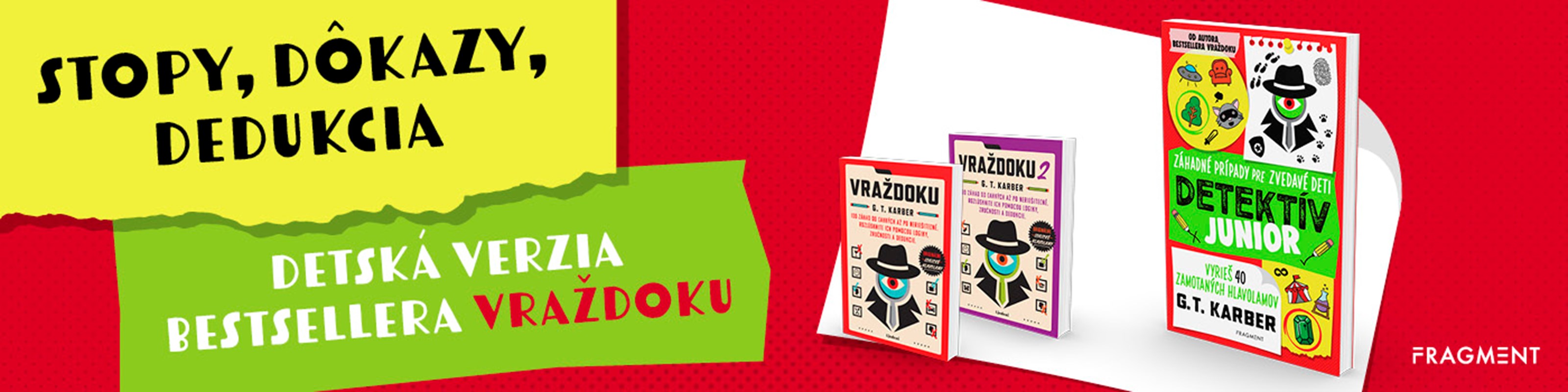 Bestseller Vraždoku prichádza v detskej verzii. Kniha Detektív junior: Záhadné prípady pre zvedavé deti prináša štyridsať záhad plných šifier, bludísk, tipov a spoľahlivých dedukčných mriežok, ktoré sú náročnosťou prispôsobené mladším ročníkom. Za všetkým stojí autor Vraždoku G. T. Karber a upozorňujeme, že kniha je nebezpečne návyková!