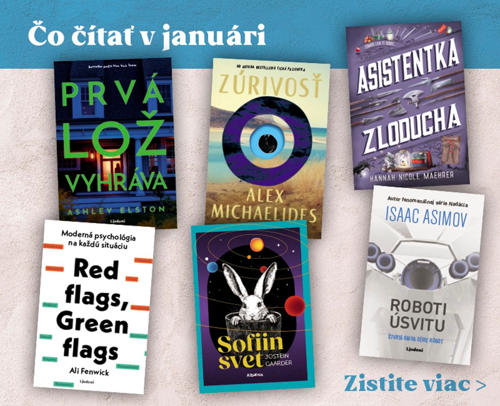 Naším januárovým TOP titulom je triler Ashley Elston Prvá lož vyhráva určený všetkým, ktorí radi čítajú dlho do noci ale najmä milovníkom zvratov. V centre príbehu je Evie Porterová, ktorá má zdanlivo všetko, čo si pekné južanské dievča môže priať: dokonalého, starostlivého priateľa, dom s bielym plotom a so záhradou, skvelých priateľov. Jediný háčik je v tom, že Evie Porterová neexistuje. Je len jednou z jej falošných identít, ktoré využíva pri plnení misií. Tie jej vyberá tajomný šéf, pán Smith, a ani jeho skutočnú identitu nepozná. Všetko ide bez problémov, až kým... Viac nebudeme prezrádzať, aby sme nepokazili zábavu.