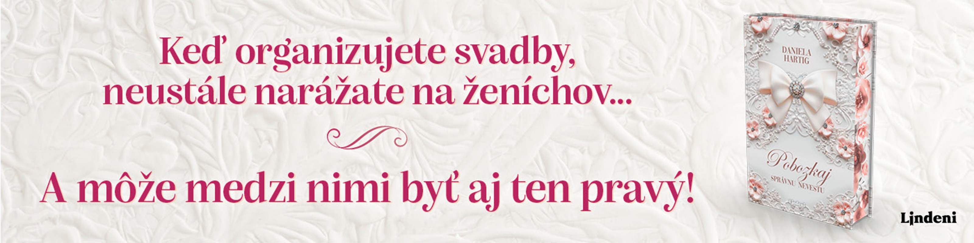 Keď organizujete svadby, neustále narážate na ženíchov... a môže medzi nimi byť aj ten pravý! V duchu tohto hesla sa nesie dej knihy autorky Daniely Hartig Pobozkaj správnu nevestu, ktorej hlavná hrdinka June vedie s priateľkami svadobnú agentúru Wedding Dreams. Keď agentúra dostane zákazku na zimnú svadbu dcéry budúceho starostu, vyzerá to, že June má kariéru pevne v rukách. Lenže nepočíta s osudom a vlastnou minulosťou. Jantárové oči budúceho ženícha, ktoré sa na June nečakane uprú, totiž veľmi dobre pozná… tie isté oči jej kedysi zlomili srdce.