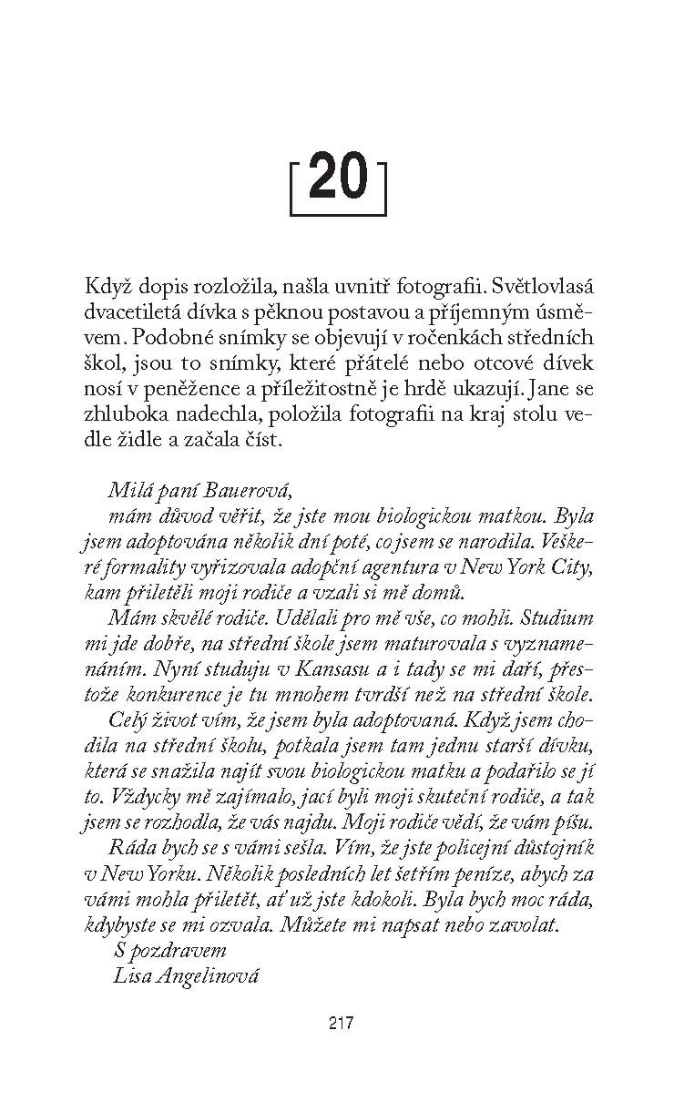 Po dvaceti letech věrné služby u newyorské policie se začíná Jane Bauerová těšit na rutinní práci v kanceláři. Musí se ovšem pokusit vyřešit svůj poslední náročný úkol: objasnit smrt muže, který byl nalezen mrtvý ve vestibulu činžovního domu. Případ je komplikovaný – na místě se nenašly žádné stopy a neexistují svědci. A co víc, obyvatelé domu, kteří tam žili v době vraždy, záhadně zmizeli. Při pátrání se nakonec i Jane ocitá tváří v tvář vrahovi…
