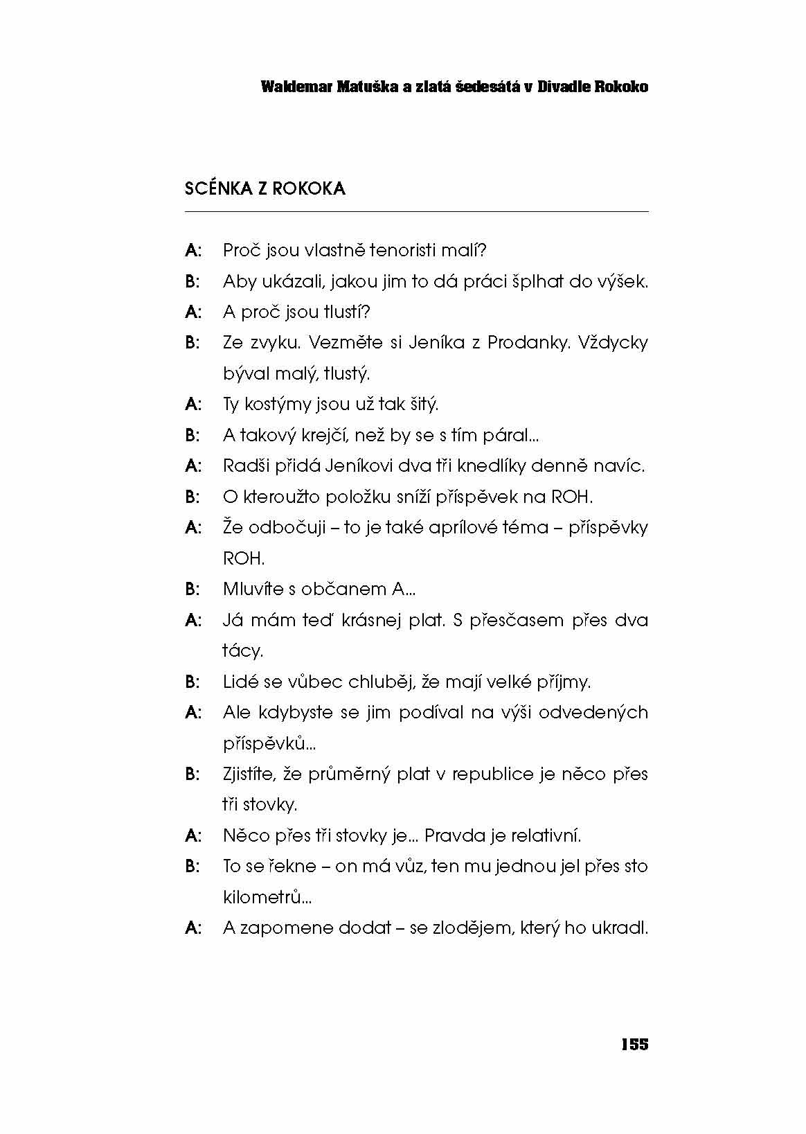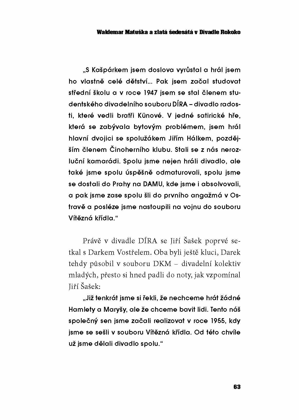 Na šedesátá léta se dnes vzpomíná s nostalgií. Vznikaly unikátní projekty v architektuře a módě, objevovala se netradiční divadla, která svými počiny brala divákům dech, provokovala, inspirovala, ale především bavila. Takovým nepřehlédnutelným projektem bylo divadlo Rokoko se svým kmenovým zpěvákem a hercem v jedné osobě Waldemarem Matuškou.