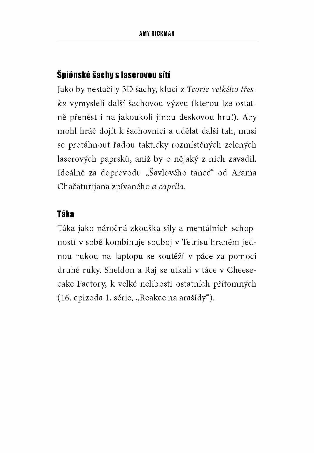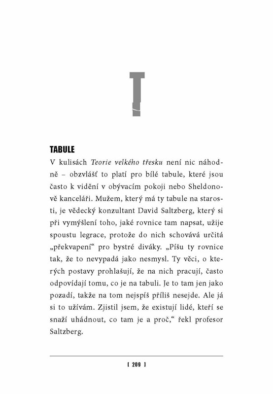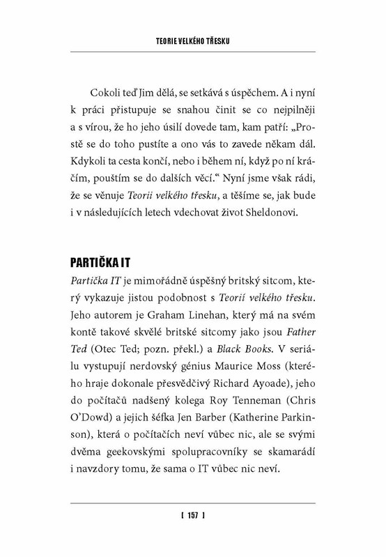 V knížce Teorie velkého třesku autorky Amy Rickman najdete vše, co jste kdy chtěli vědět o jednom z nejúspěšnějších televizních seriálů všech dob. Dozvíte se, jaké okolnosti doprovázely vznik tohoto sitcomu, o soukromém životě hlavních představitelů, nahlédnete do zákulisí a odhalíte řadu zajímavostí, které by měl každý fanda seriálu znát: kdo tvůrcům pomáhá s psaním scénářů, jak se zrodila znělka k seriálu, jak spolu herci vycházejí na place nebo jaké hostující hvězdy se v seriálu objevily.