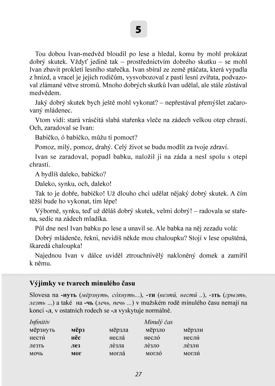 Tři z nejznámějších ruských pohádek - O Mrazíkovi, Finist, jasný sokol, Carevič Ivan a Šedý vlk jsou zpracovány pro studijní účely a určeny mírně pokročilým studentům ruštiny. Publikace pomůže zábavným způsobem obohatit slovní zásobu, rozvinout schopnost porozumění mluvenému slovu a zdokonalit se ve výslovnosti.