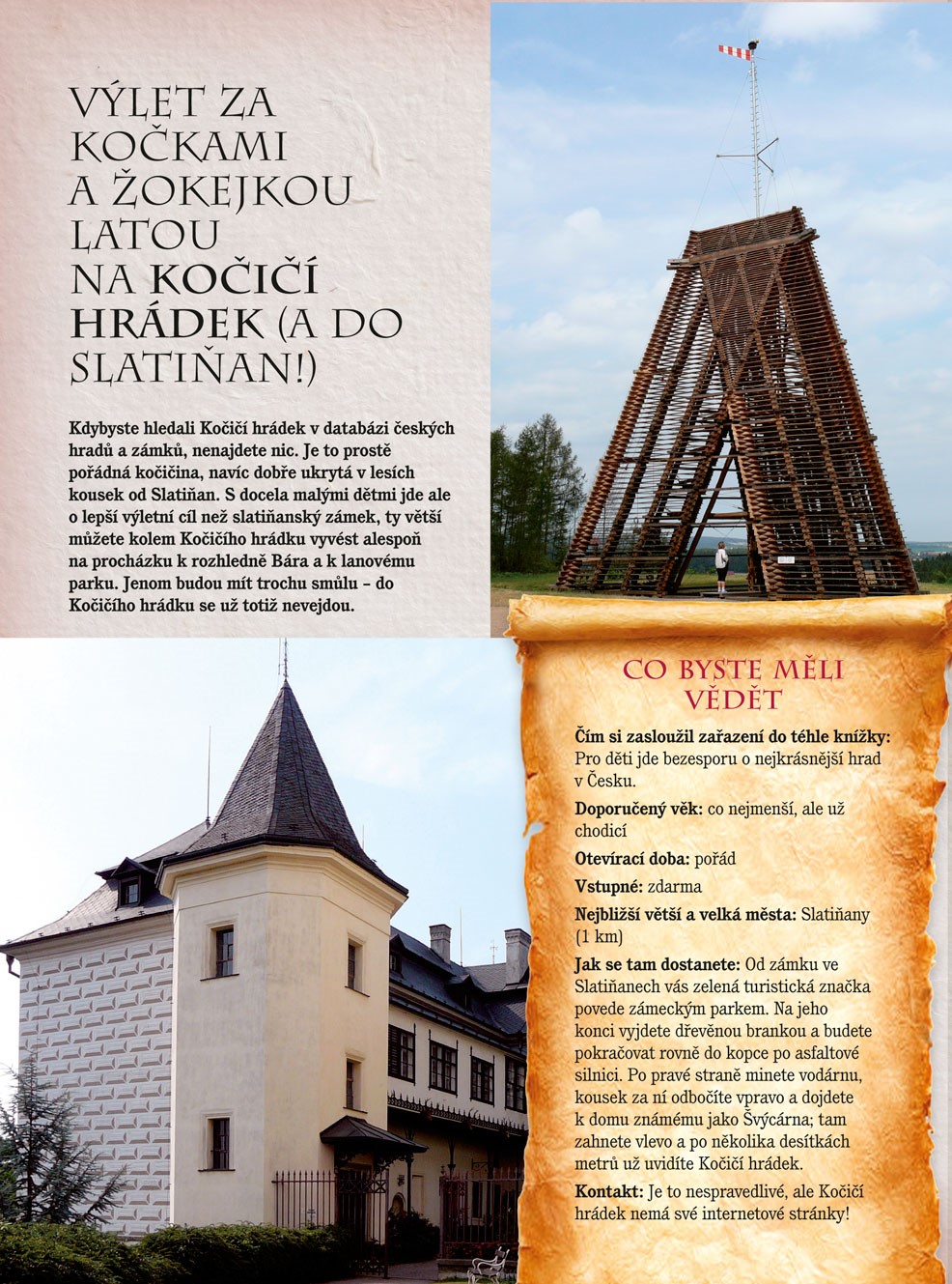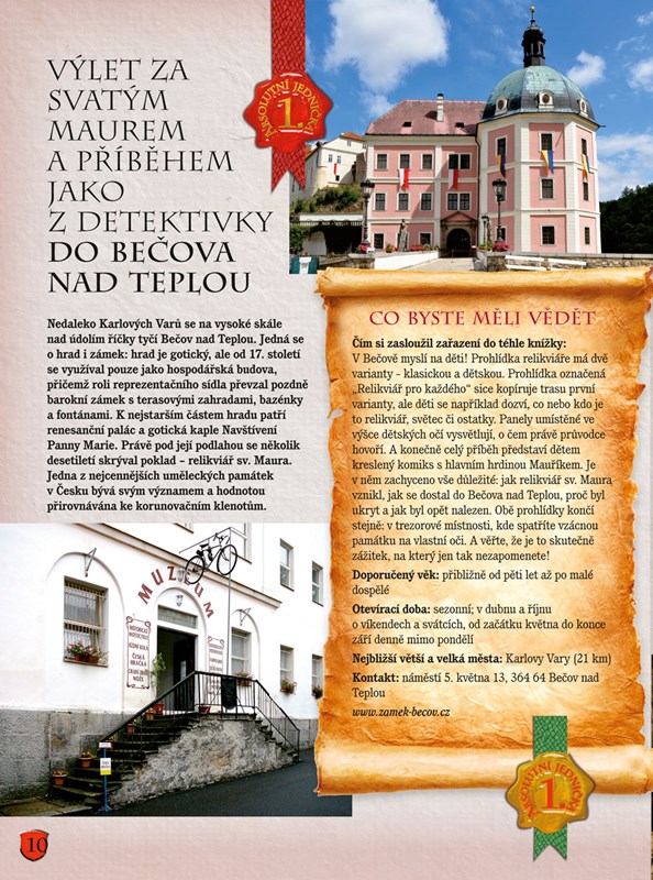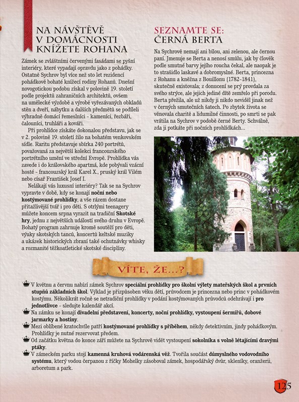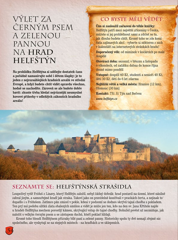 Hrady obklopené zubatými hradbami, noblesní zámky i tajuplné zříceniny, to jsou jedny z nejoblíbenějších výletních cílů. Víte však, kam můžete vyrazit za každého počasí, který zámek nabízí pohádkové či noční prohlídky, nebo na kterém hradě můžete s dětmi hledat poklady? Odpovědi na tyto otázky a mnoho dalších informací naleznete v této publikaci, jež potěší dospělé, batolata i otrlé teenagery. Máme pro vás připraveno sedmdesát nejlepších tipů na české hrady a zámky, kde budou vaše děti v centru pozornosti a kde vždy naleznete něco, co je bude bavit.