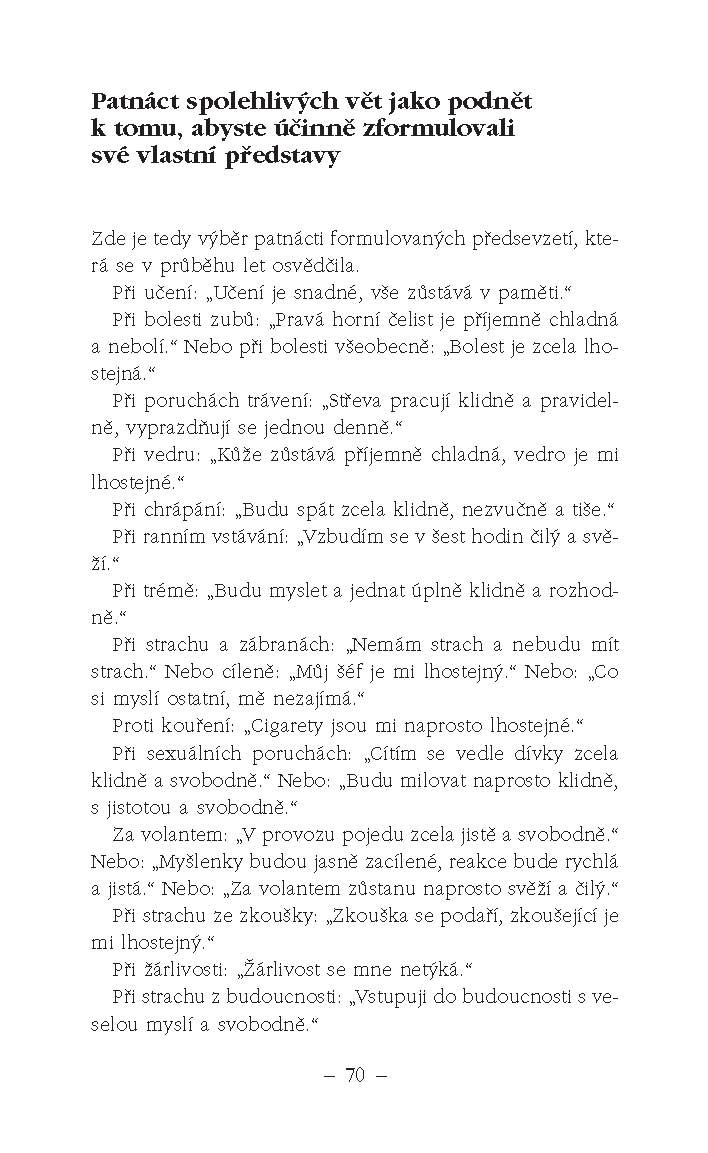 Pokud takovými být nechceme, musíme proti tomu něco podniknout. Musíme sami sebe vychovat k osobní svobodě a ke schopnosti prožívat soukromé štěstí. Knížka je provokativní výzvou k pokusu o vědomý plánovitý život s co nejvyšší mírou osobní svobody. Obsahuje strategii, taktiku a techniku ke zvládnutí této proměny.
