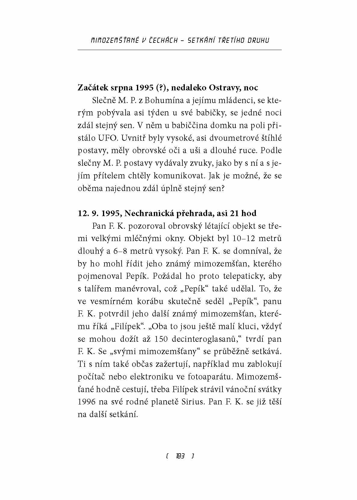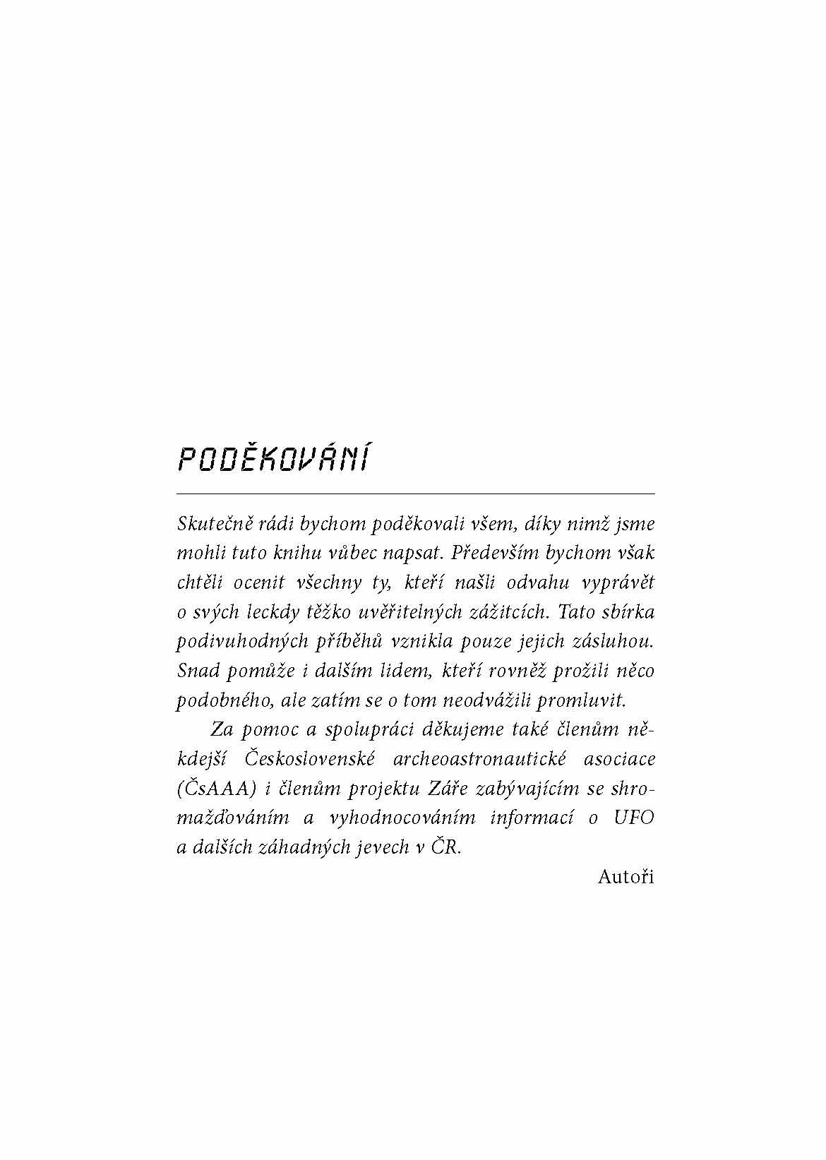 Seznamte se s podivuhodnými příběhy, které se přihodily obyčejným lidem. Všechny se odehrály zde, v České republice, a jsou zaznamenány přesně tak, jak je vylíčili ti, kteří je prožili. Řada příběhů je opravdu děsivá, jiné jsou spíše úsměvné, všechny však rozhodně stojí za to, aby o nich člověk popřemýšlel. Co doopravdy zažili lidé, kteří se autorům svěřili? Nemohlo jít o přeludy a halucinace? Všichni svědci jsou skálopevně přesvědčeni, že se jim přihodilo něco podivného a že líčí reálný zážitek.