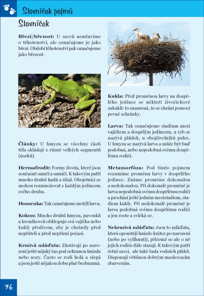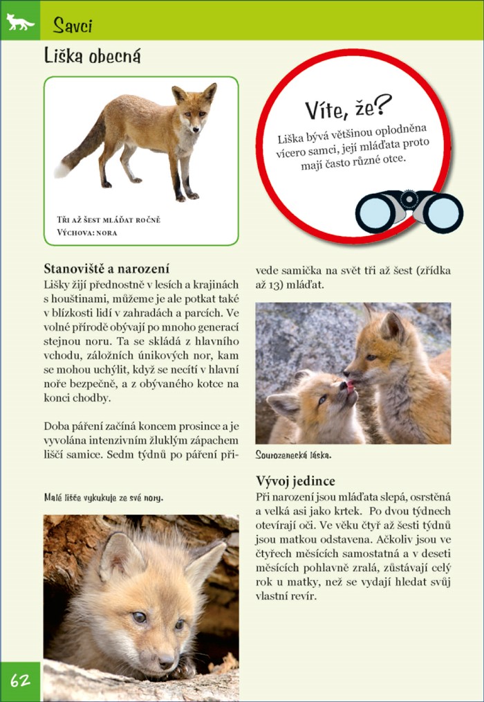 U jednotlivých druhů zvířat vás seznámí s jejich způsobem rozmnožování, vývojem jedince a péčí rodičů o potomky, ale prozradí vám i mnoho zajímavého o jejich vlastnostech a stanovištích.