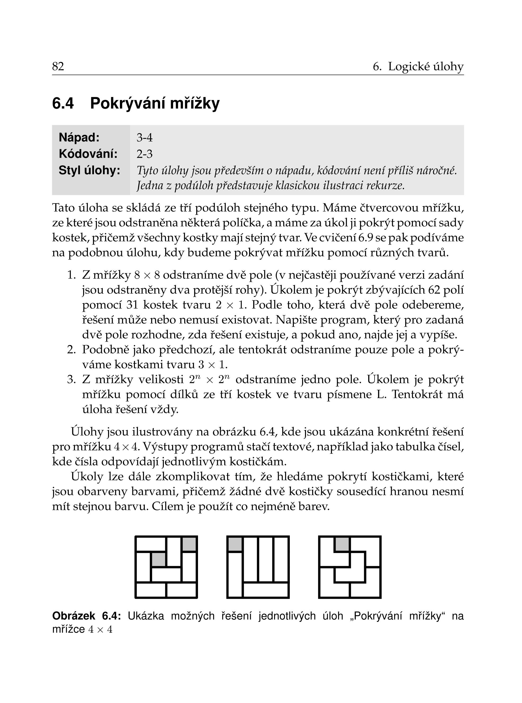 Zkušený autor, který prošel programováním od základů přes roli studenta až na druhou stranu barikády a začal své poznatky předávat méně znalým, vám v knize nabízí ucelený soubor zajímavých zadání programátorských úloh. Ty jsou přehledně rozděleny do tematických oblastí, přičemž u každé je uvedeno ohodnocení její obtížnosti. V textu najdete základní rady, jak úlohy řešit, a detailní řešení k některým vypracovaným cvičením. Kniha se zaměřuje na široké spektrum programátorů: inspiraci v ní najdou nejen začátečníci a pokročilí, ale i profesionálové, kteří v ní mohou vyhledat zajímavá zadání, na nichž si procvičí a zopakují své znalosti.