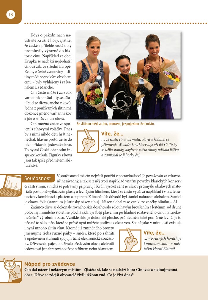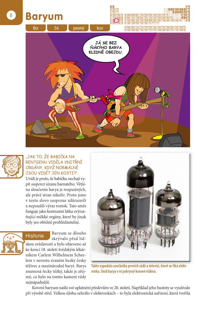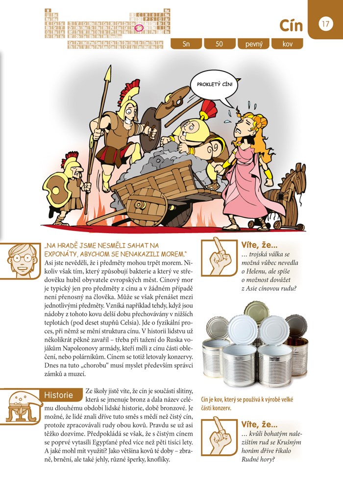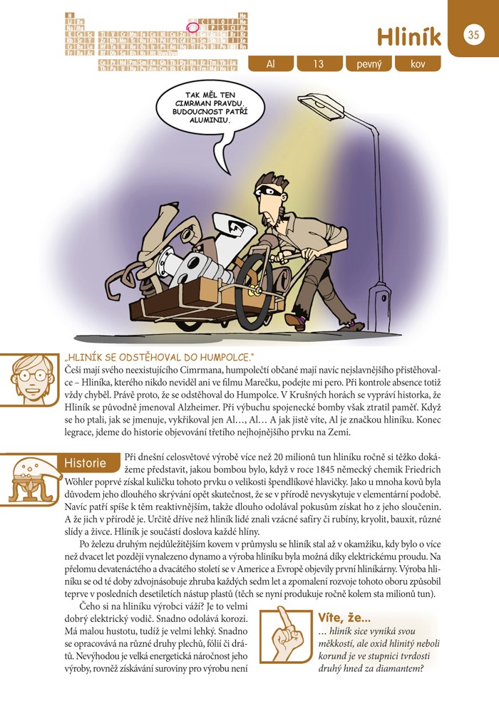 Chemické prvky tvoří naši potravu, naše těla, předměty v dílně, koupelně, spíži… Mnohé najdeme i tam, kde bychom je vůbec nečekali. Jejich objevování, výroba i používání mají navíc zajímavou historii i současnost. V této knize jich je přes čtyřicet. A jsou to právě ty, které se nejčastěji objevují ve školních vzdělávacích programech českých škol, a tedy i v písemkách. Pojďme se s nimi seznámit blíž...