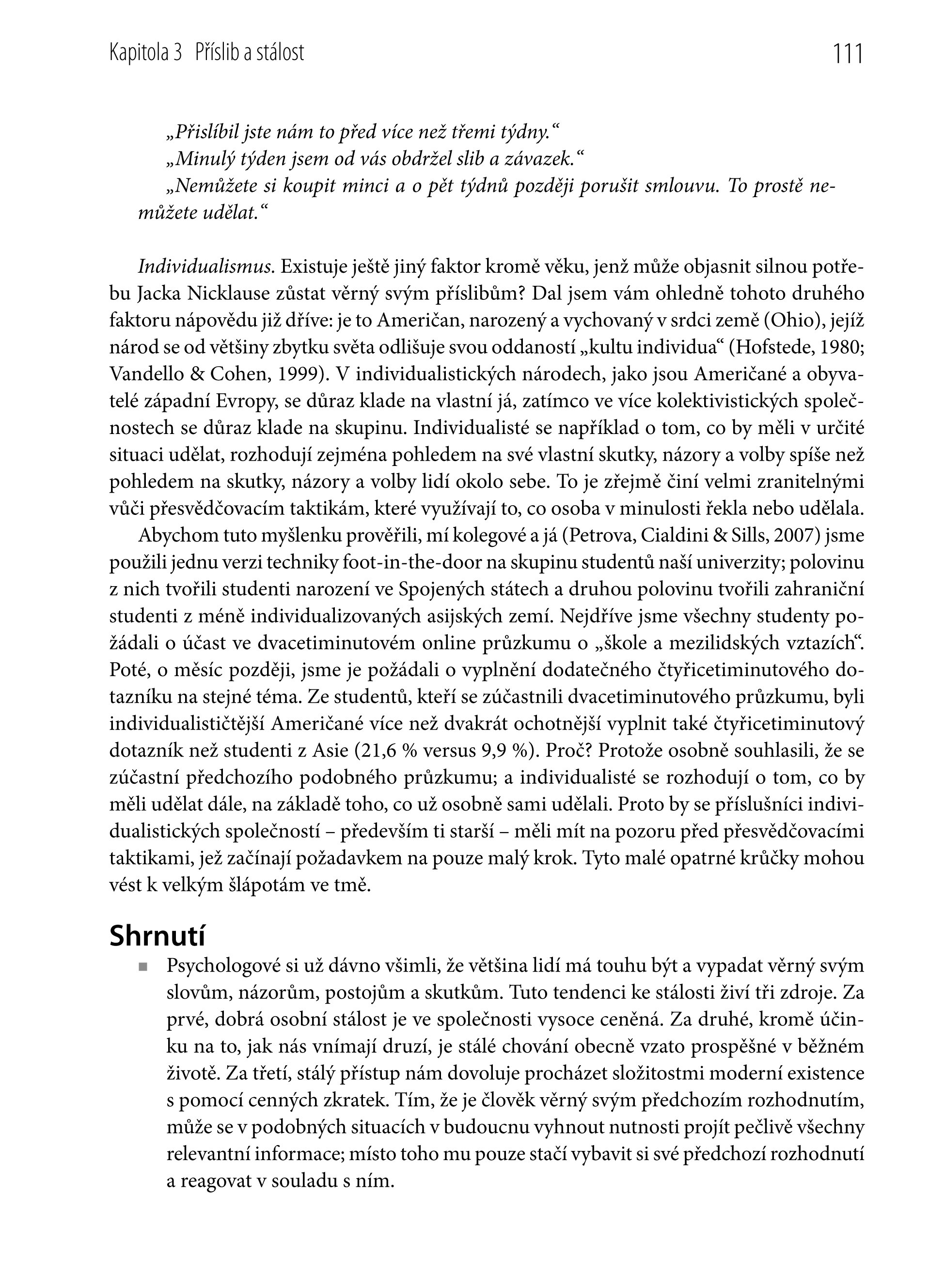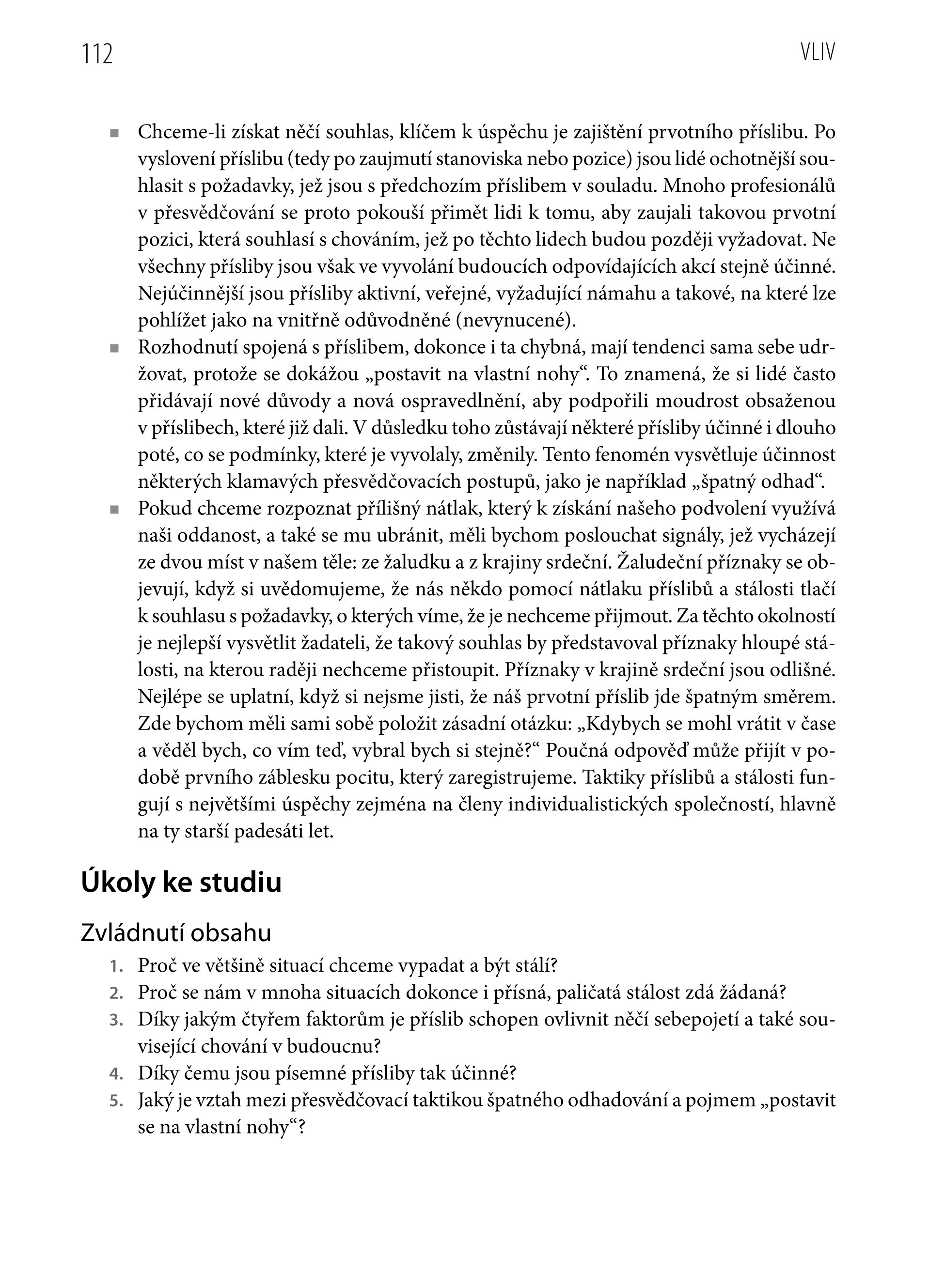 Ačkoli profesionálové využívají tisíce různých taktik, aby z nás dostali slůvko „ano“, většinu z nich lze podle Cialdiniho ztotožnit s jedním ze šesti základních psychologických principů – reciprocita, stálost, sociální vliv, sympatie, autorita a nedostatek. Tyto principy, jejich funkce ve společnosti a možnosti využití jejich obrovské síly k manipulaci s lidmi tvoří základ celé knihy.