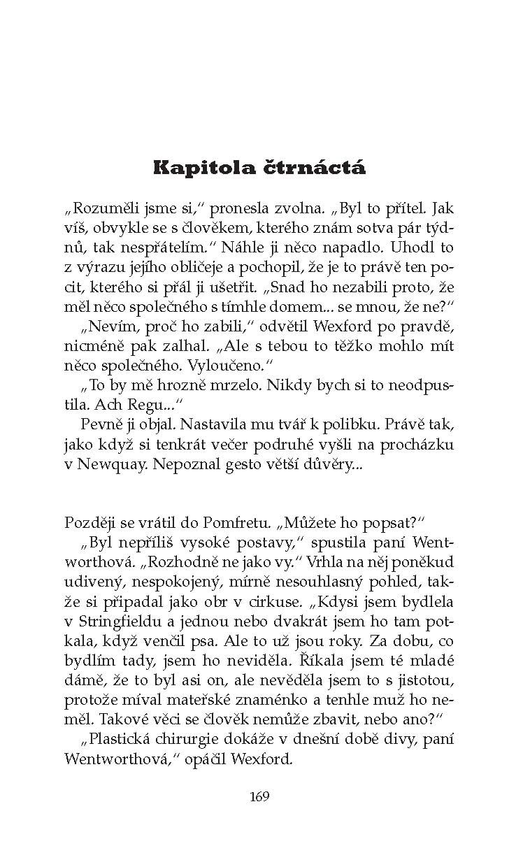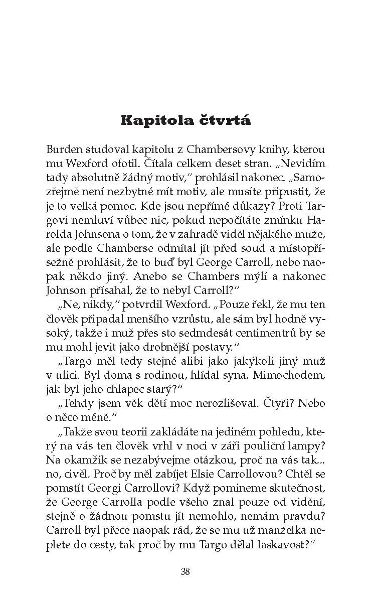 Když šéfinspektor Wexford náhodou na ulici zahlédne Erika Targa, rozložitého muže drobného vzrůstu s nestvůrně velikým mateřským znaménkem, který mu v minulosti znepříjemňoval život, nemůže uvěřit svým očím. Už dávno si myslel, že ho nikdy neuvidí. Ale Eric Targo je zpět a Wexford se znovu vydává po stopách dávných případů, aby konečně odhalil pravdu a usvědčil viníka, který dlouhá léta unikal spravedlnosti. Vrací se nejen k předchozím policejním vyšetřováním, ať už je to dosud neobjasněný případ smrti Elsie Carrollové nebo nevyřešená vražda chlapce, kterého našli uškrceného v místní botanické zahradě, ale i do vlastní minulosti. Kingsmarkham tehdy vypadal jinak než nyní, věci se zdály jednodušší, lidé bezstarostnější, Wexford prožíval svou životní lásku a jako policista teprve začínal. A hned při vyšetřování první vraždy narazil na Erika Targa, který ho od té doby pronásleduje jako zlověstný přízrak.