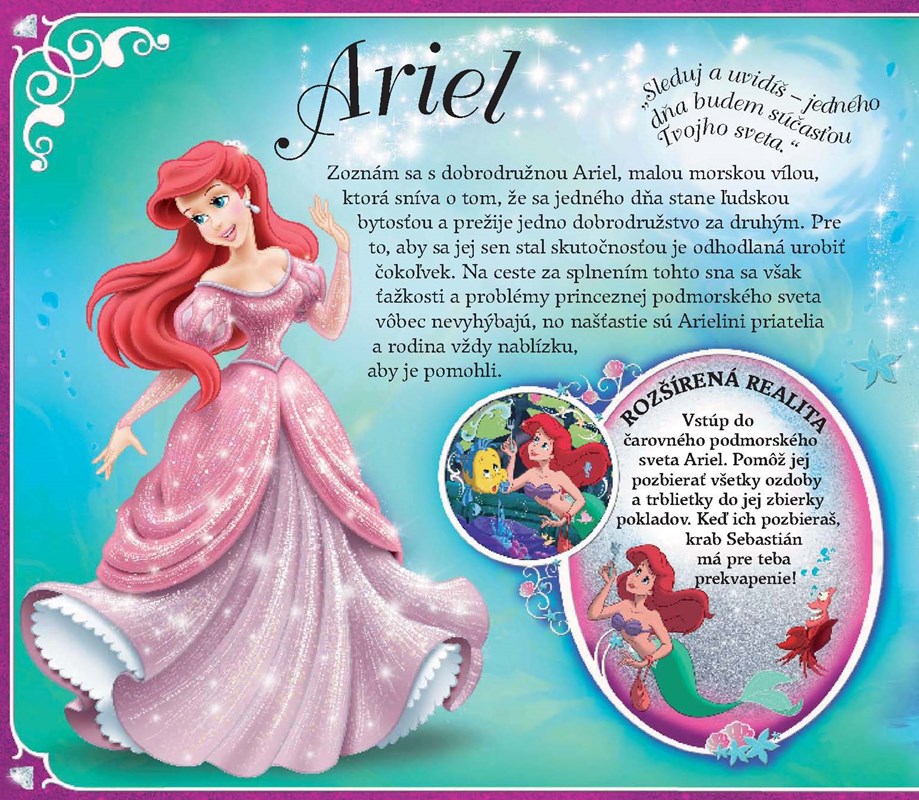 Úžasný zážitok s rozšírenou realitou prináša nová kniha Disney Princezné, ktorá splní tvoje tajné sny. Prostredníctvom hracích kariet sa staneš súčasťou čarovného sveta svojich obľúbených princezien. A je len na tebe, či sa rozhodneš objavovať podmorské poklady s Ariel, vyberieš sa na veľkolepý bál s Popoluškou do zámku, spoločne s Rapunzel si užiješ čarovný okamih, kedy sa k oblohe vznesú stovky svietiacich lampiónov alebo navštíviš zámok, kde býva Kráska a Zviera spolu so zakliatym služobníctvom.