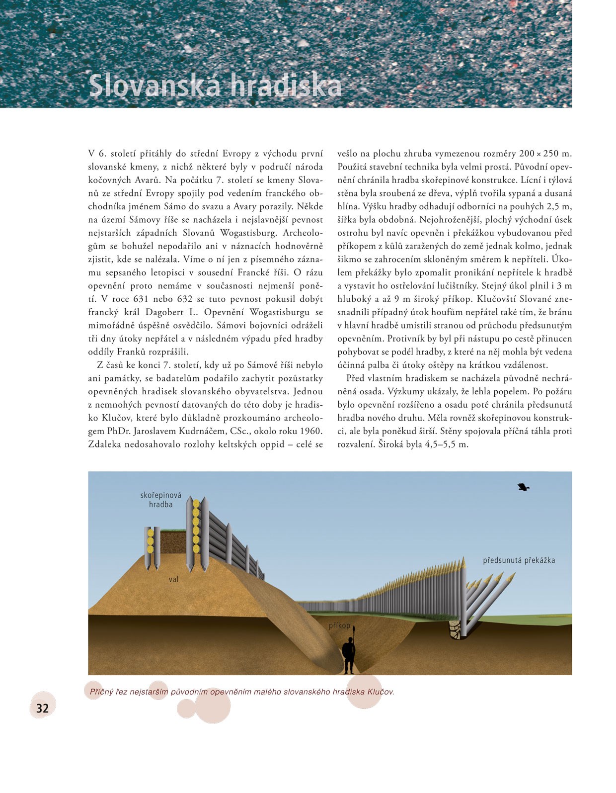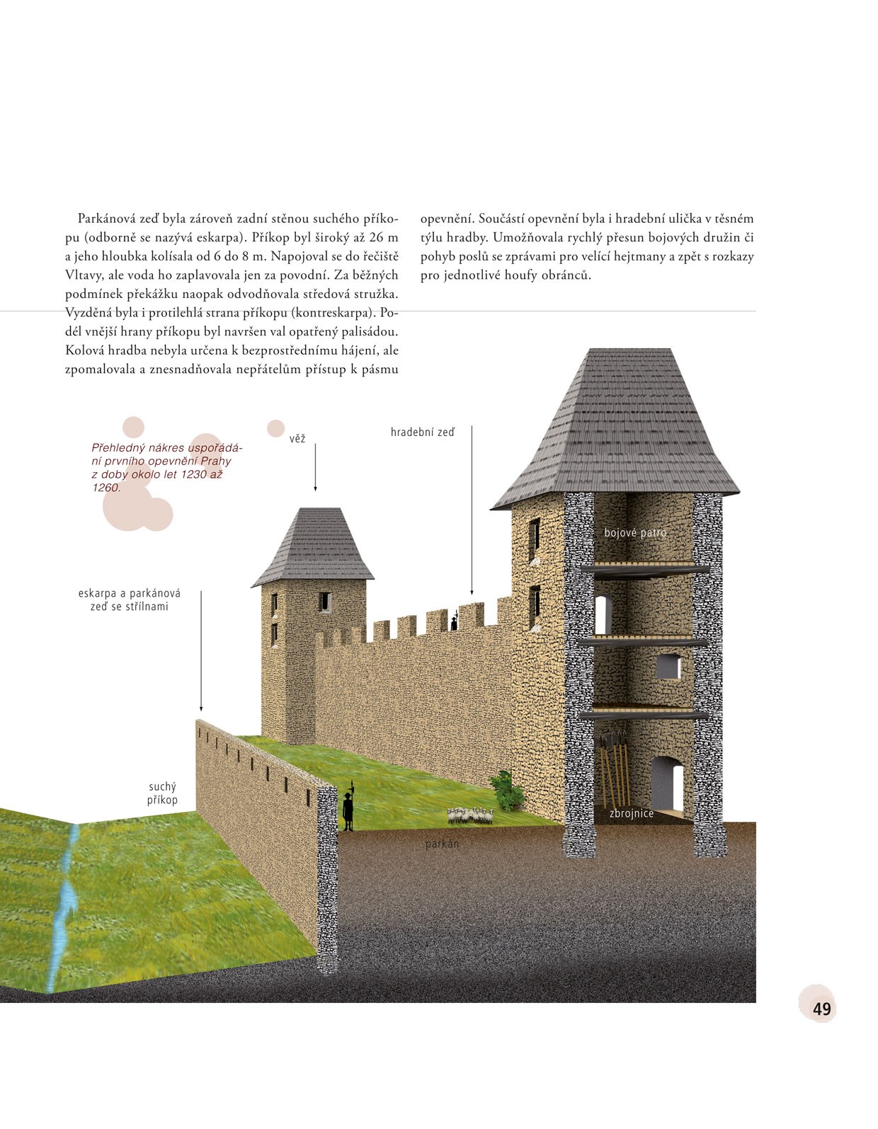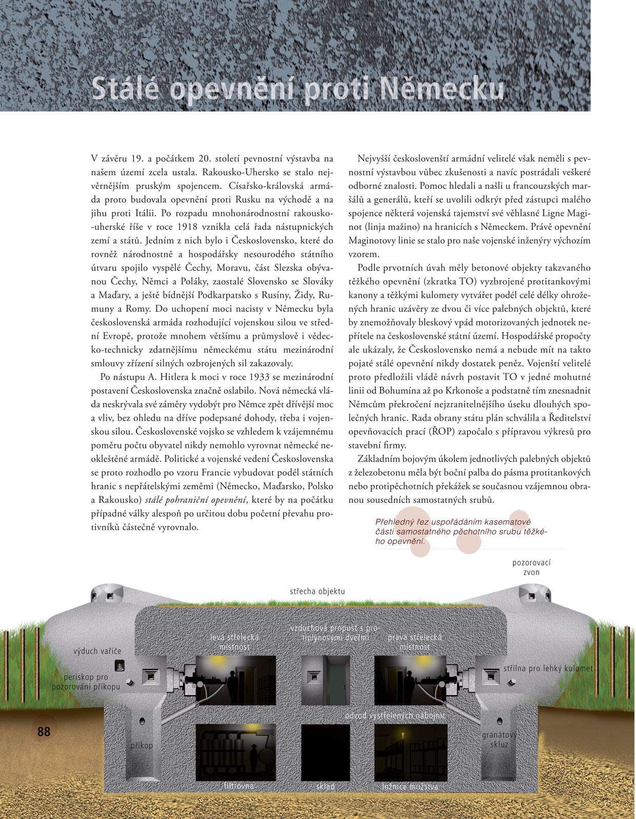 Další bohatě ilustrovaná publikace úspěšné edice Stručná historie – předurčené pro mladší čtenáře a čtenářky – přináší souborně zpracovaný náhled na vývoj pevnostního stavitelství od pravěku do současnosti. Ozřejmuje způsoby opevňování osad v době kamenné (Rmíz u Laškova – nejstarší pevnost ve střední Evropě vůbec). Nepomíjí mimořádně pozoruhodnou skalní pevnost Denemark z doby měděné a důkladně popisuje rozsáhlá keltská opevnění (Vladař, Závist, Třísov) a římské opevněné tábory (Mušov). Zachycuje vývoj středověkých slovanských hradisek (Klučov, Libušín, Mikulčice aj.) i kamenných hradů (Přimda, Pražský hrad). Objasňuje způsoby obrany opevnění před vynálezem palných zbraní (Angerbach) i převratné změny po něm (Kalich, Pravda, Český Šternberk). Obsáhle seznamuje s vývojem rondelového (Kunětická hora, Pardubice) a bastionového opevnění (Hradec Králové, Brno, Terezín). Přehled vrcholí kapitolou o železobetonovém stálém opevnění z let 1935–1938 zřizovaném proti početným nepřátelům republiky. Vše pomáhají osvětlit názorné ilustrace doprovázené popisky i příjemně čtivý text plný zajímavostí.