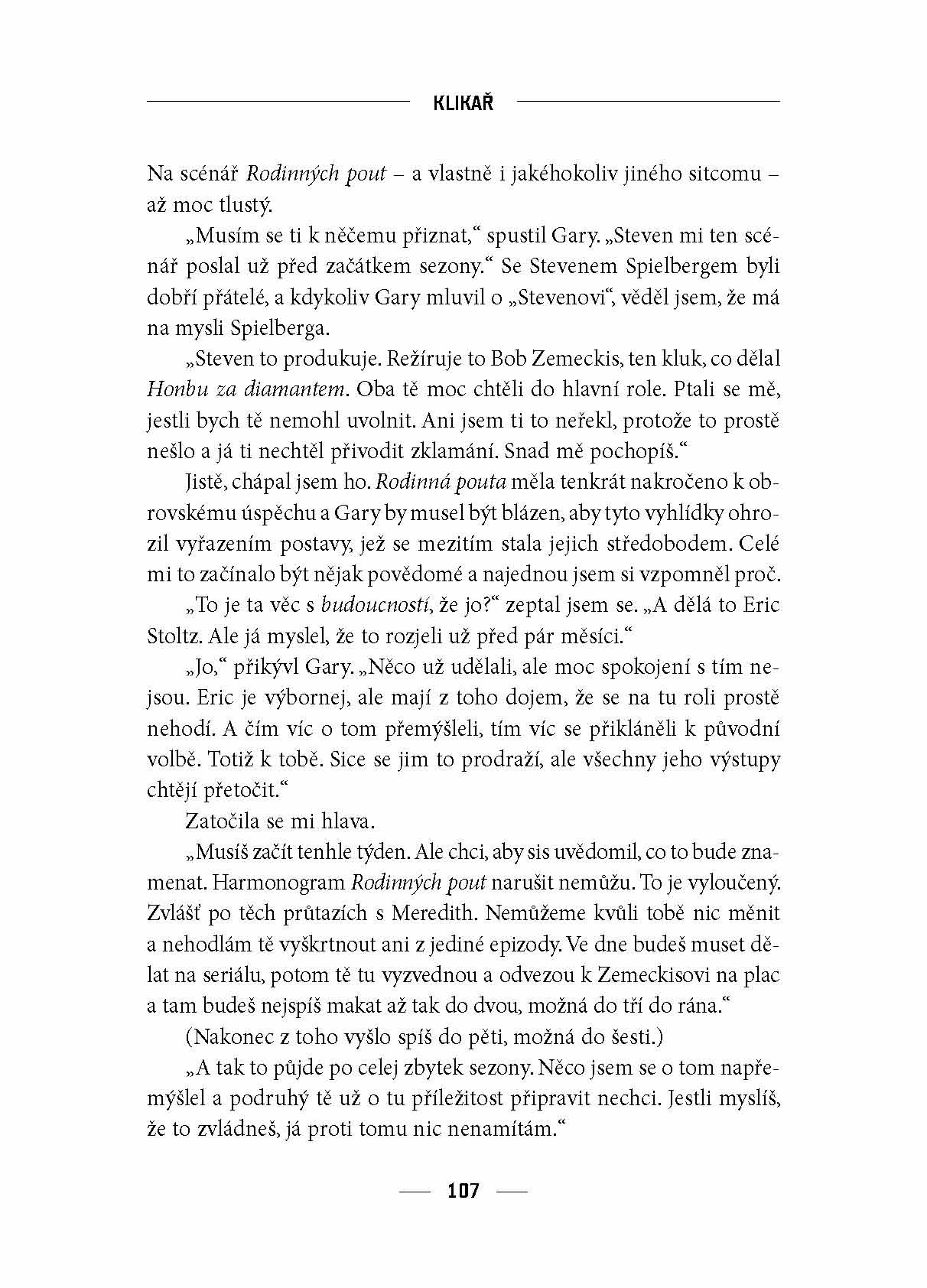 Michael J. Fox je známý kanadský herec, který se proslavil především svou rolí v trilogii Návrat do budoucnosti. Neméně úspěšné byli ale i jeho další role ve filmech a televizních seriálech. V roce 1991 mu byla diagnostikována Parkinsonova choroba – to však veřejně ohlásil až o sedm let později. Ve svém autobiografickém románu Klikař vypráví svůj příběh o boji se zákeřnou nemocí, která mu nečekaně zasáhla do života. Ve vzpomínkách se vrací do dětství a ke všem slavným rolím, jež ztvárnil. O své nemoci hovoří otevřeně a bilancuje nejen to, co mu vzala, ale i to, co mu dala – schopnost vážit si života a vidět všechny jeho krásy.