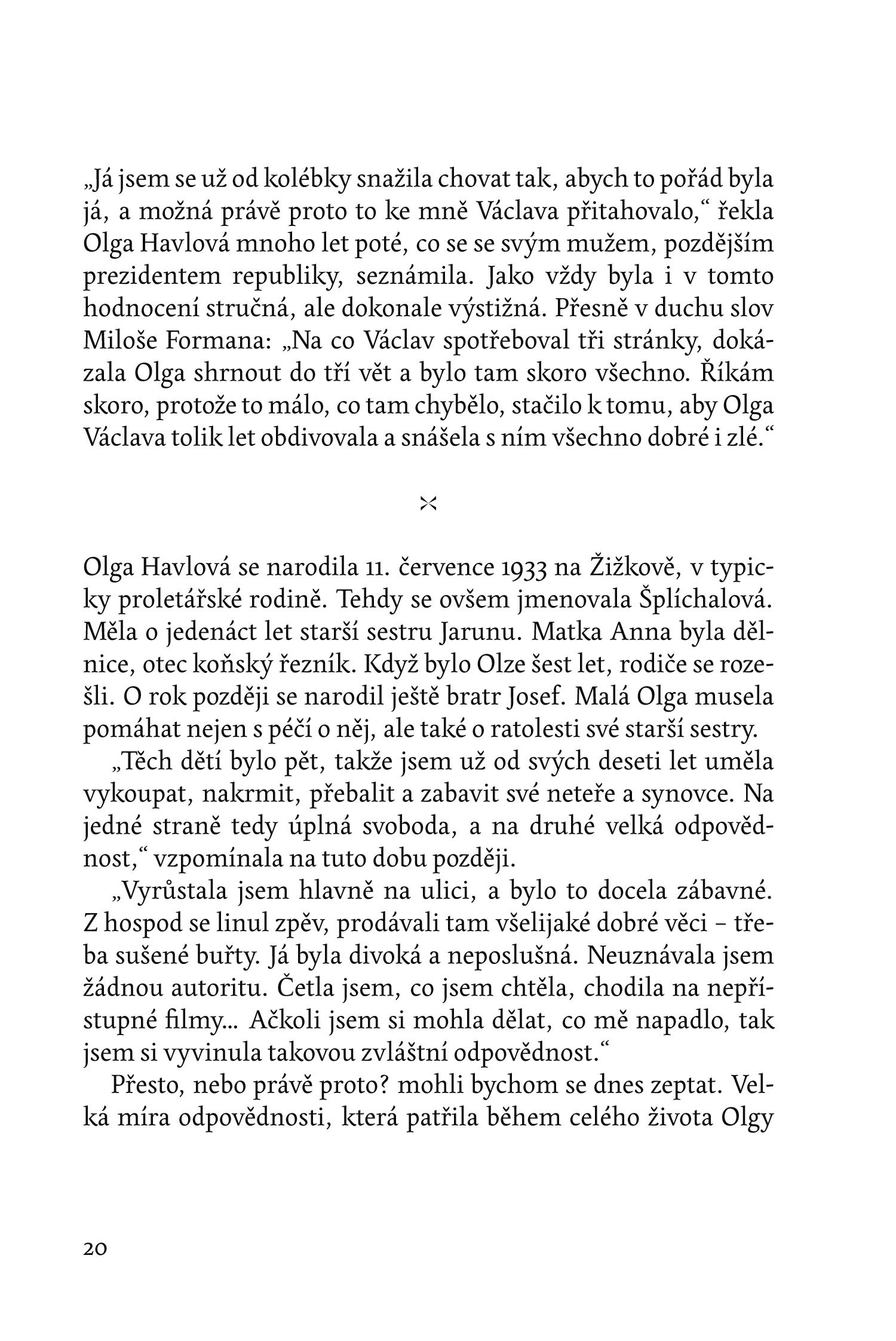 Olga Havlová (11. 7. 1933 – 27. 1. 1996) se nezapomenutelně vryla do našich srdcí. Nejen jako manželka Václava Havla, ale především jako silná a statečná žena, která se nebála vzdorovat osudu a pomáhat druhým.