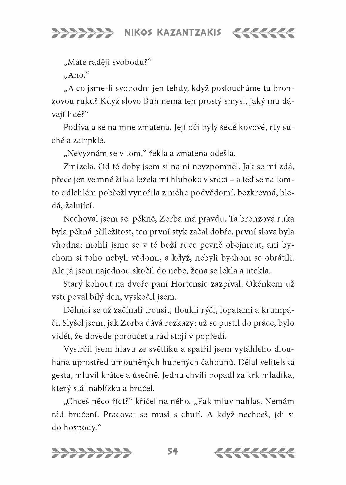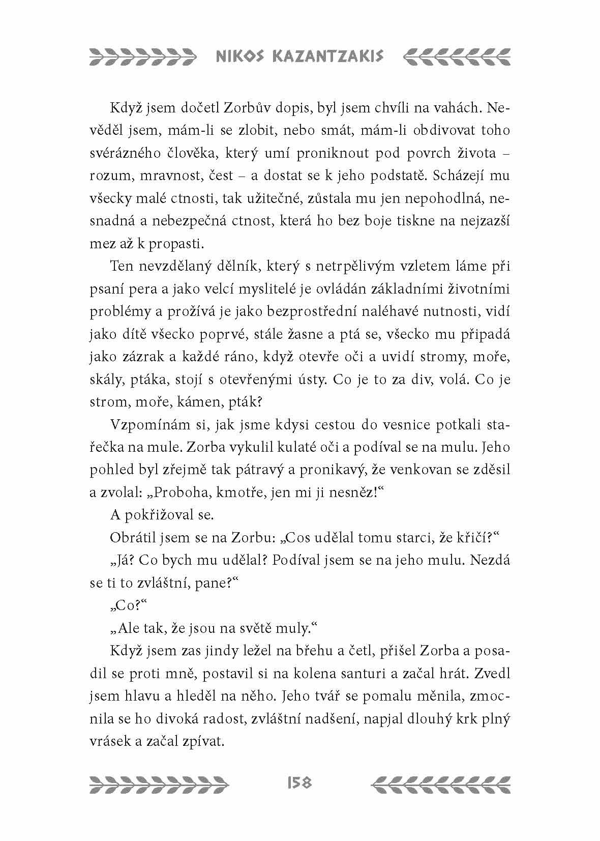 Nikos Kazantzakis napsal svůj slavný román, jehož původní název zní Život a skutky Alexise Zorbase, během jediného měsíce v roce 1943. Byl záhy přeložen do mnoha jazyků a dnes je řazen mezi klasická díla světové literatury. Román je částečně biografický a Kazantzakis v něm zpodobnil svého přítele Georgiose, s nímž si r. 1919 najal pilu ve vesnici Pastrov v kraji Mani na Peloponésu. Právě on se stal předobrazem hlavního protagonisty Alexise Zorby, venkovana žijícího v souladu s přirozenými zákony. Celá kniha je směsí fikce, reality i filozofie. Román byl navíc také úspěšně zfilmován, v titulní roli se představil slavný Anthony Quinn.