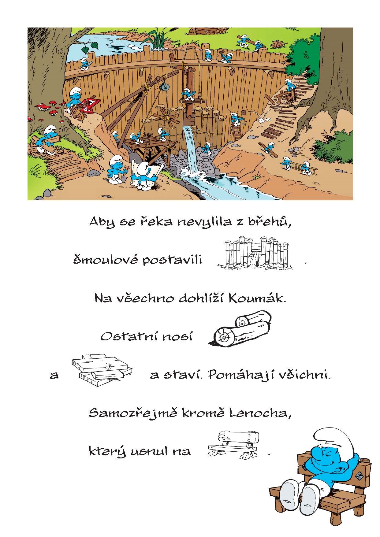 Šmoulové vyrazili k řece a užívají si spoustu zábavy. Poznáš, co všechno mají s sebou a co viděli?