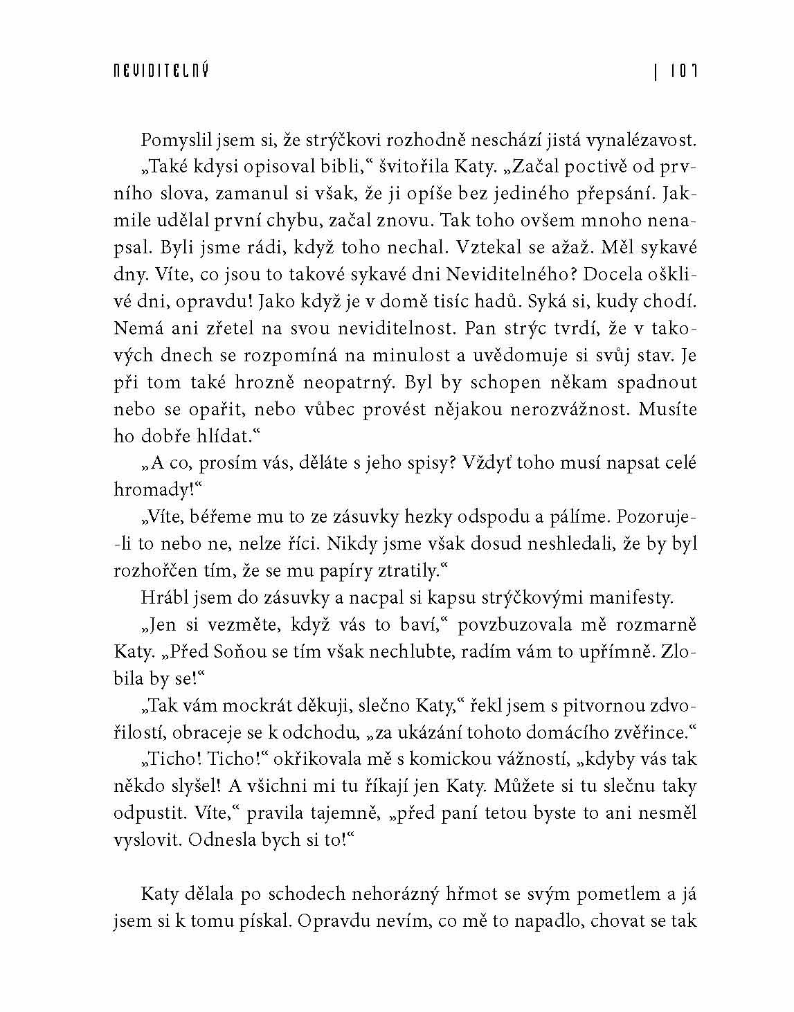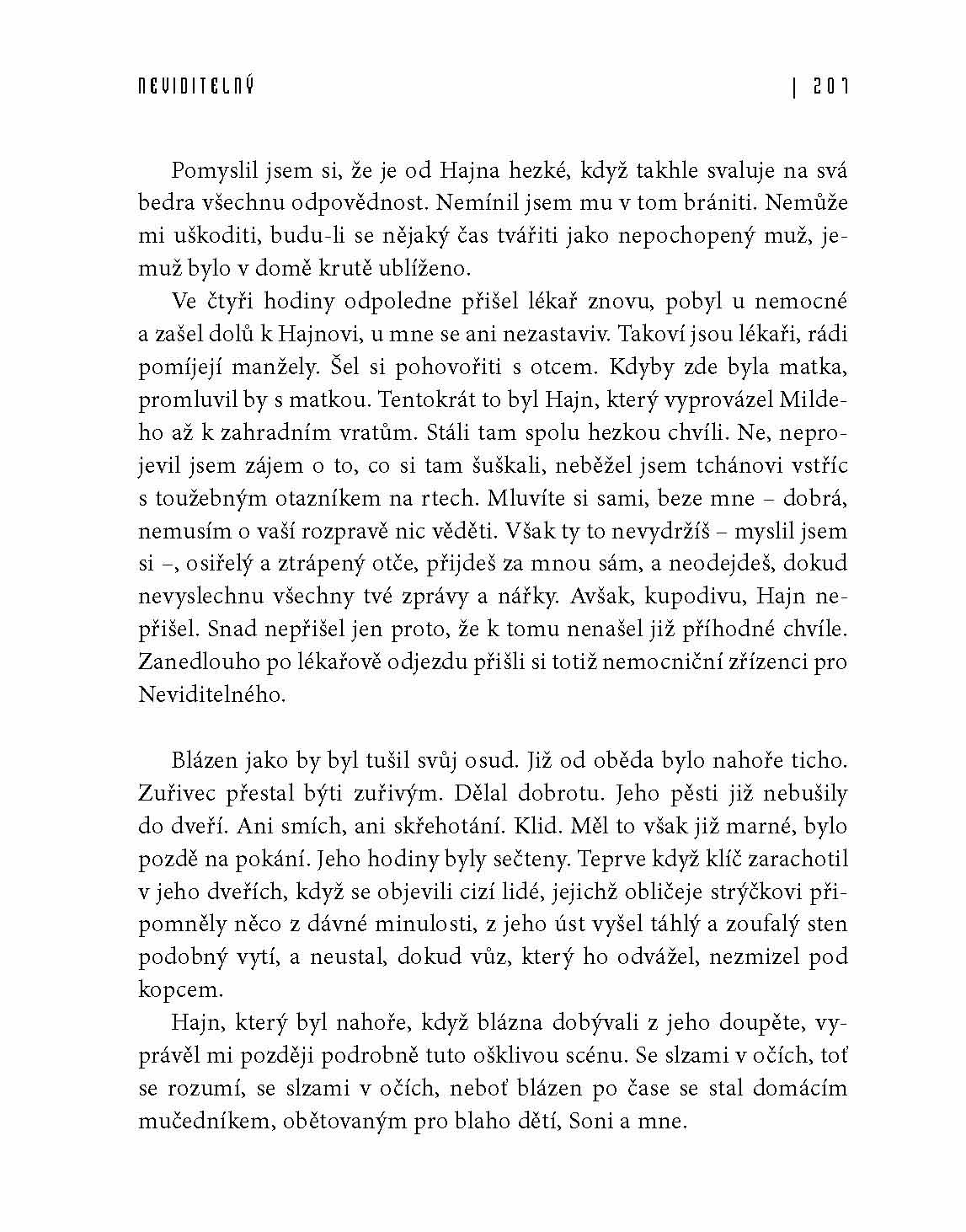 Neviditelný představuje jednu z nejvýznamnějších knih Jaroslava Havlíčka, předního autora psychologické prózy 30. a 40. let minulého století. Havlíčkova vyprávění se charakteristicky odehrávají v prostředí maloměsta přelomu 19. a 20. století a sledují psychologii rodinných a partnerských vztahů na pozadí proměny místní, mnohdy „zpráchnivělé“ morálky. Na cestě za štěstím hlavního hrdiny Petra zamíchá kartami postava Neviditelného. Jak velký podíl na neštěstí má však jeho touha po moci a bohatství?