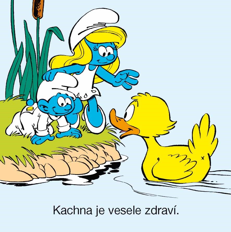 Leporelo o šmoulím Mrněti pro nejmenší děti.