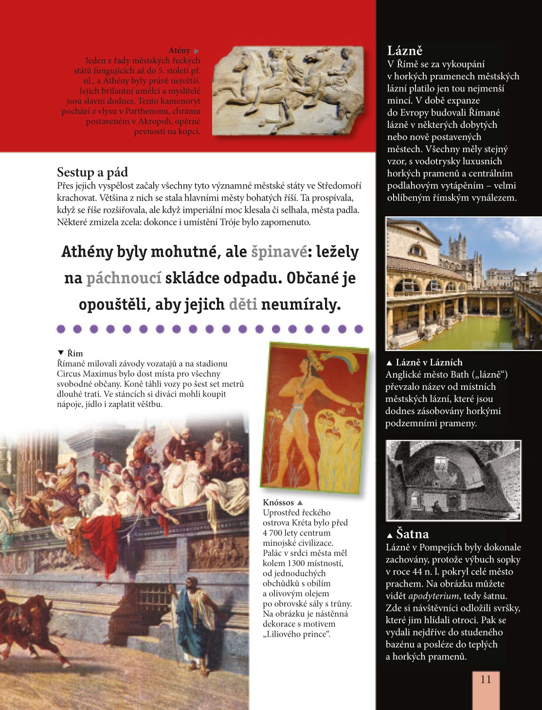 kategorií. Jejich obyvatelé se učí vypořádat se všemi výzvami, které život ve městě přináší, aby mohli dosyta a svobodně užívat také všech jeho výhod. Ať už je milujete nebo nenávidíte, v každém případě jimi můžete být donekonečna fascinováni, protože jejich dějiny jsou dějinami samotného lidského života. Umělci mají ve městech domov, krutí vládcové si v nich budují své paláce a chamtiví dobyvatelé je ničí.