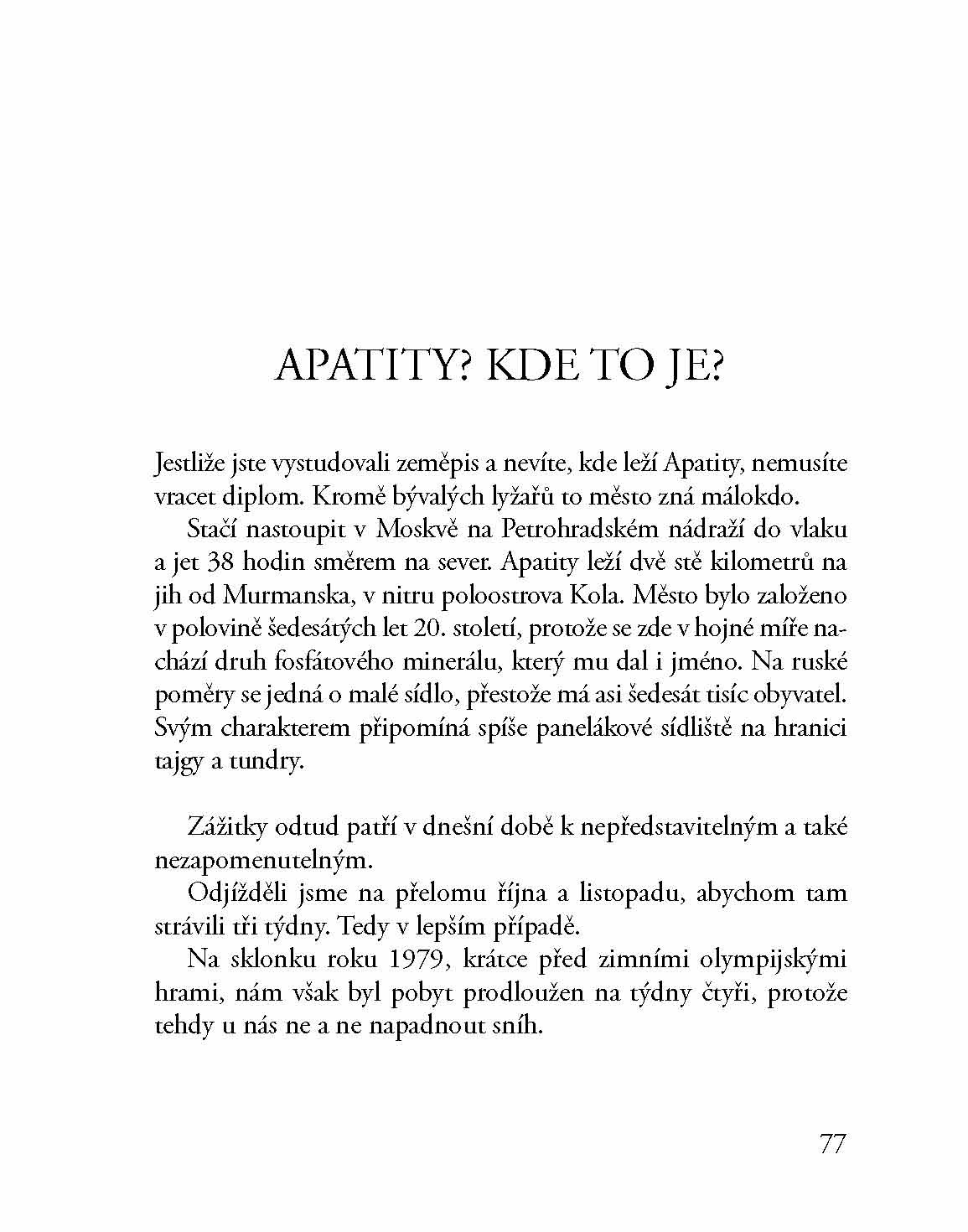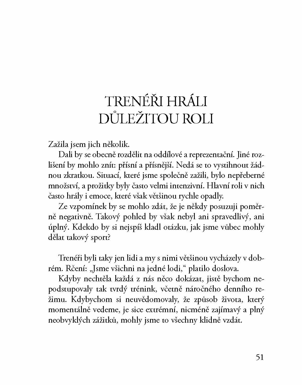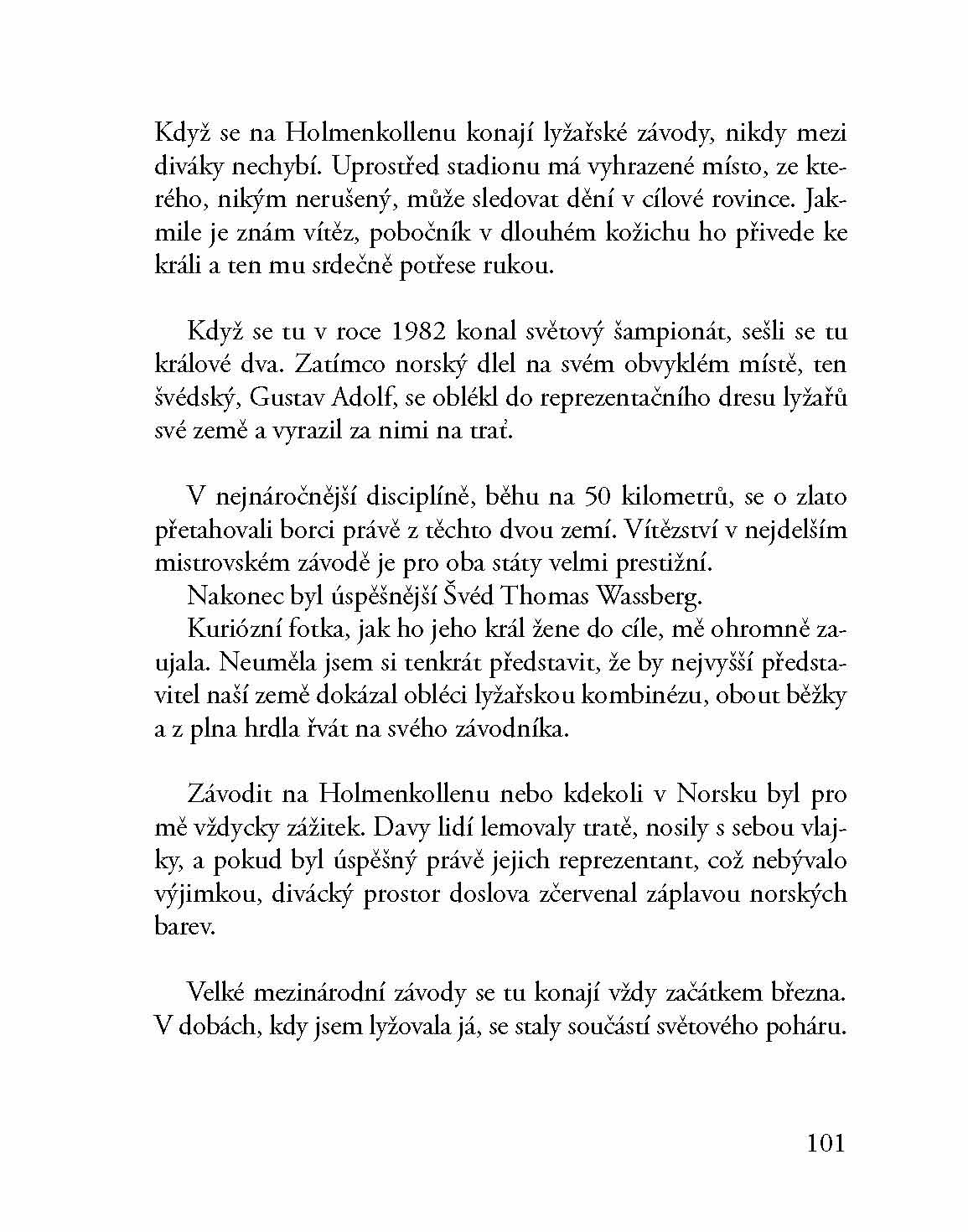 Bývalá československá reprezentantka v běhu na lyžích, trojnásobná olympijská medailistka Květa Jeriová Pecková připomíná prostřednictvím svých vzpomínek někdejší lyžařskou reprezentaci. Nejde však o chronologické líčení co, kdy, kde a jak bylo, jako spíš o vyprávění jednotlivých epizodek. A také o připomínku doby minulé, včetně jejích absurdit, které se pomalu ztrácejí pod nánosem času.