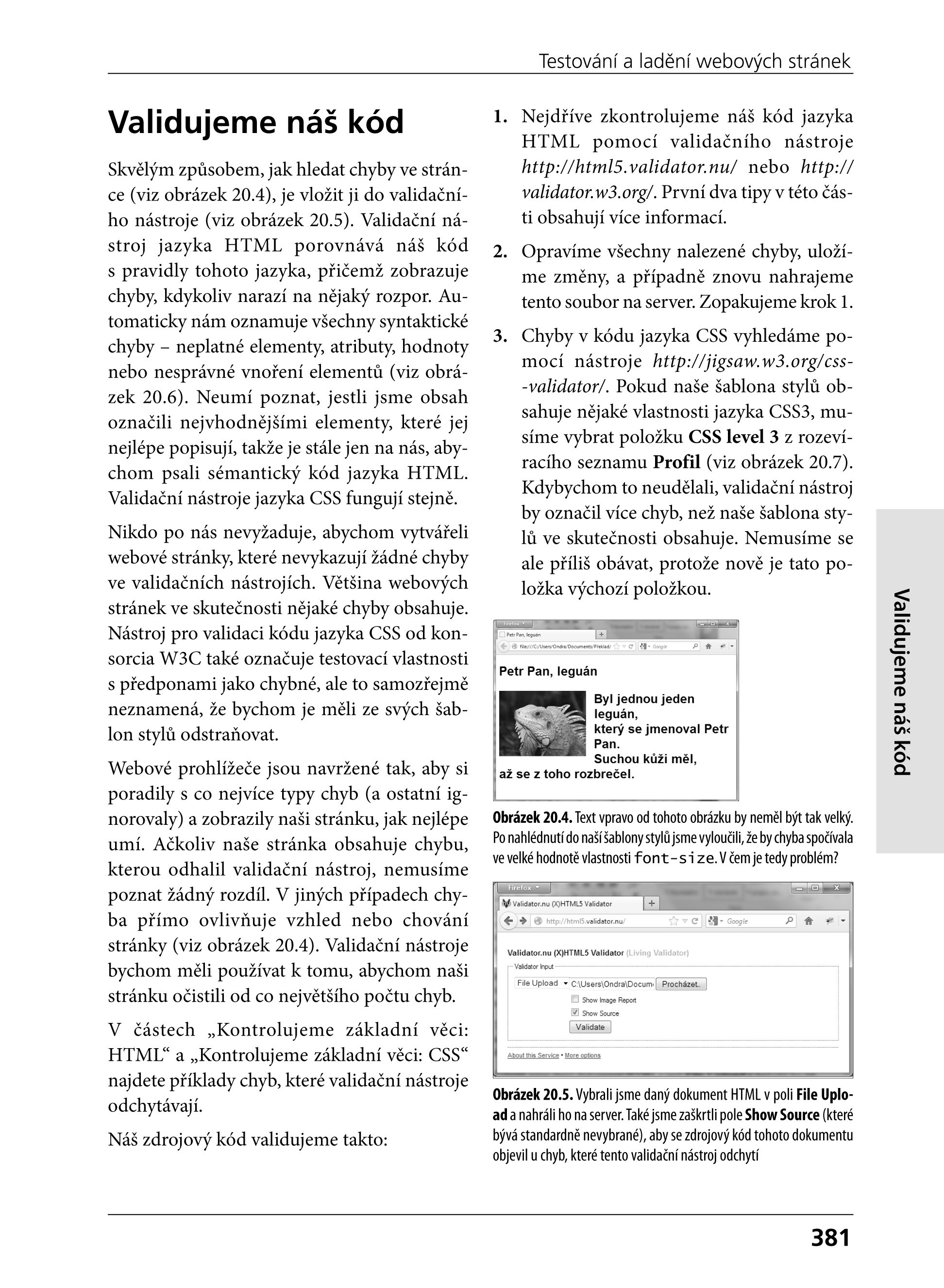 Zkušení autoři, kteří denně pracují s webovými technologiemi a mají za sebou řadu úspěšných titulů o tvorbě stránek, vás v jednadvaceti kapitolách postupně seznámí se všemi potřebnými postupy, jak vytvořit svou vlastní internetovou prezentaci. Nové techniky si vyzkoušíte na snadno pochopitelných a detailně popsaných krokových postupech, díky kterým budete rychle postupovat kupředu. Kniha je doslova prošpikována velkým množstvím praktických tipů, jak daný postup realizovat rychleji, elegantněji a efektivněji.
