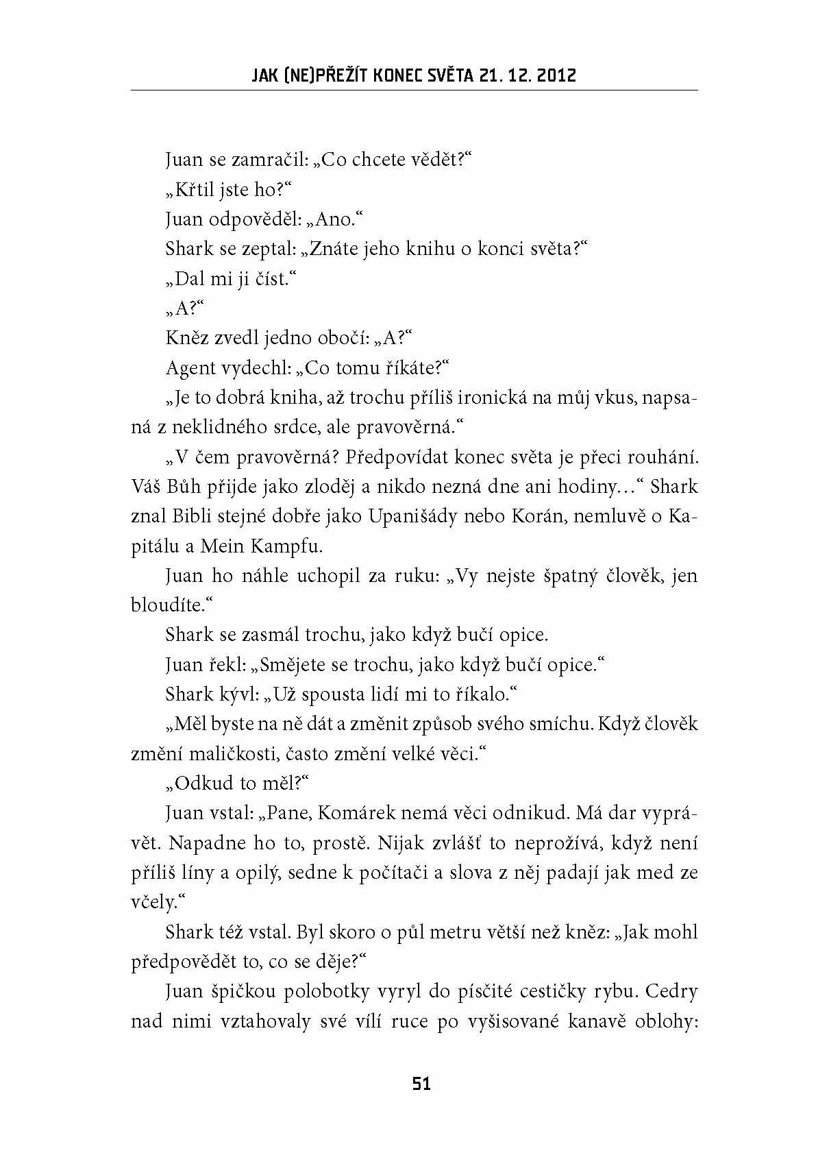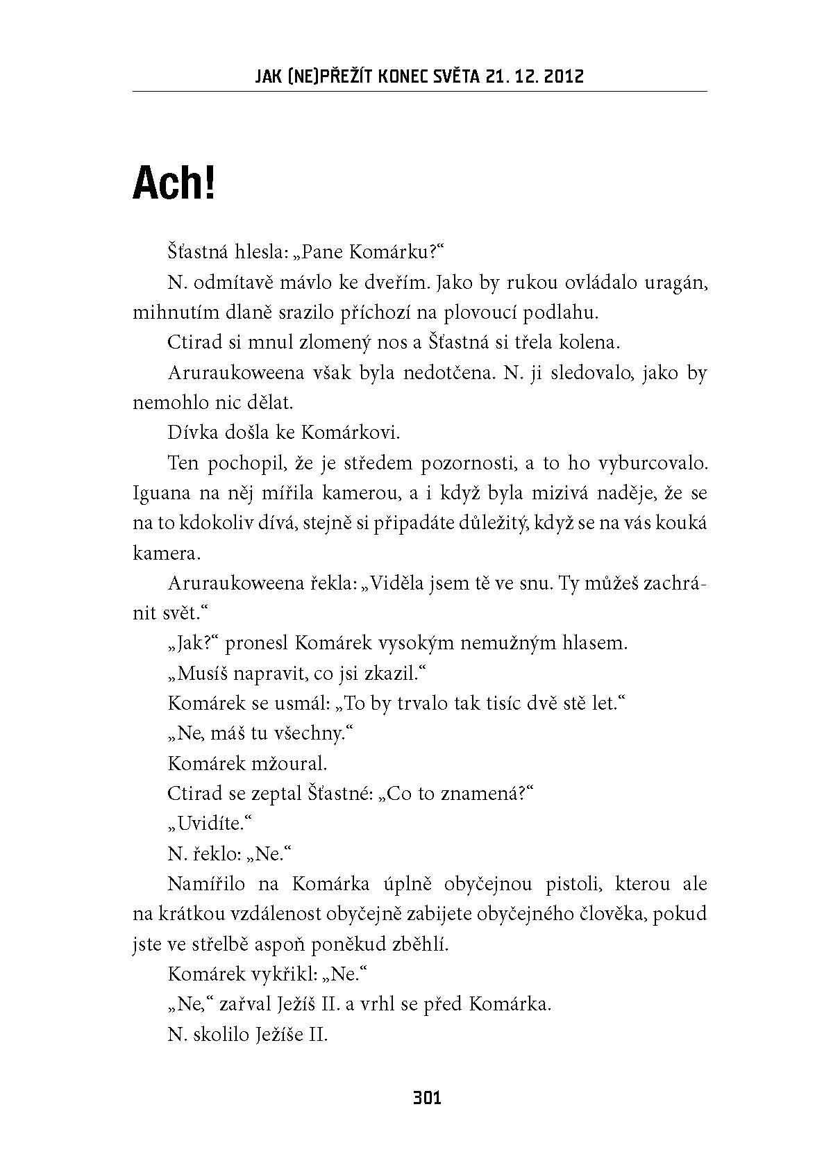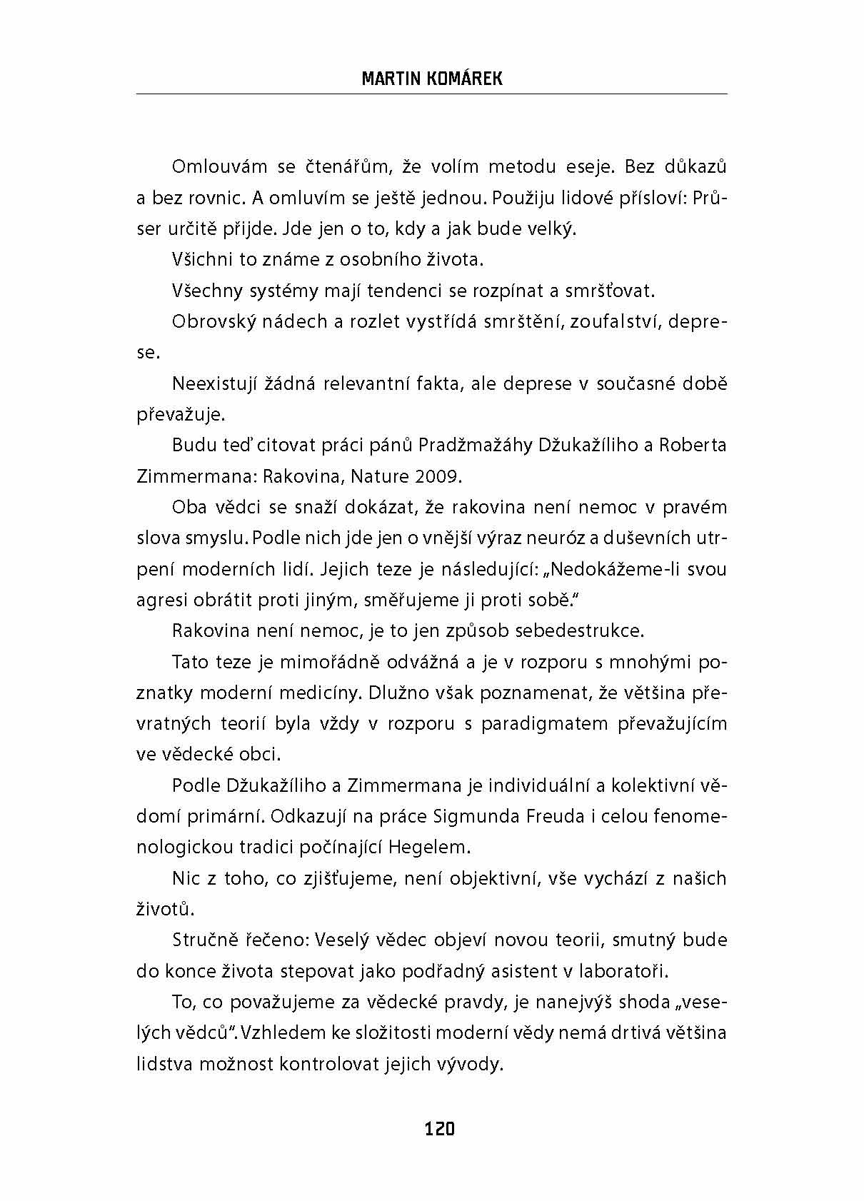 Novinář, publicista a známý komentátor Mf Dnes Martin Komárek se ve svém nejnovějším literárním díle vydává do pro něj poněkud netypických vod – románu, který je zároveň apokalyptickou vizí konce světa, špionážním thrillerem i satirou.