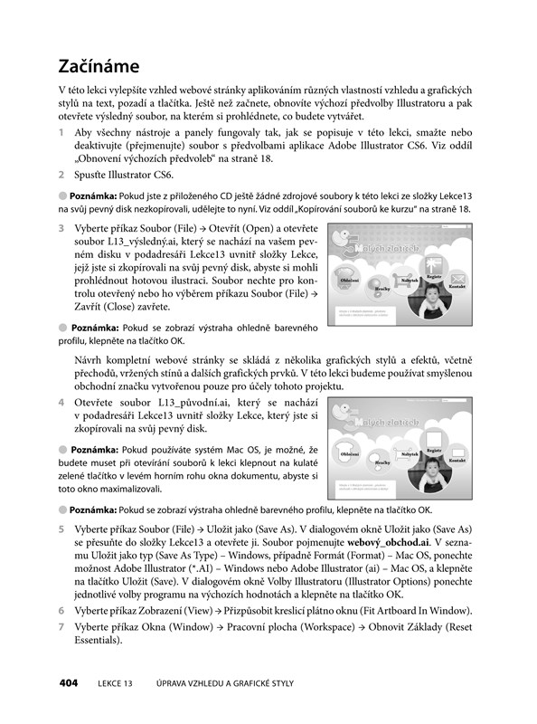 Kniha obsahuje prvky jak českého, tak anglického uživatelského rozhraní Photoshopu CS6.