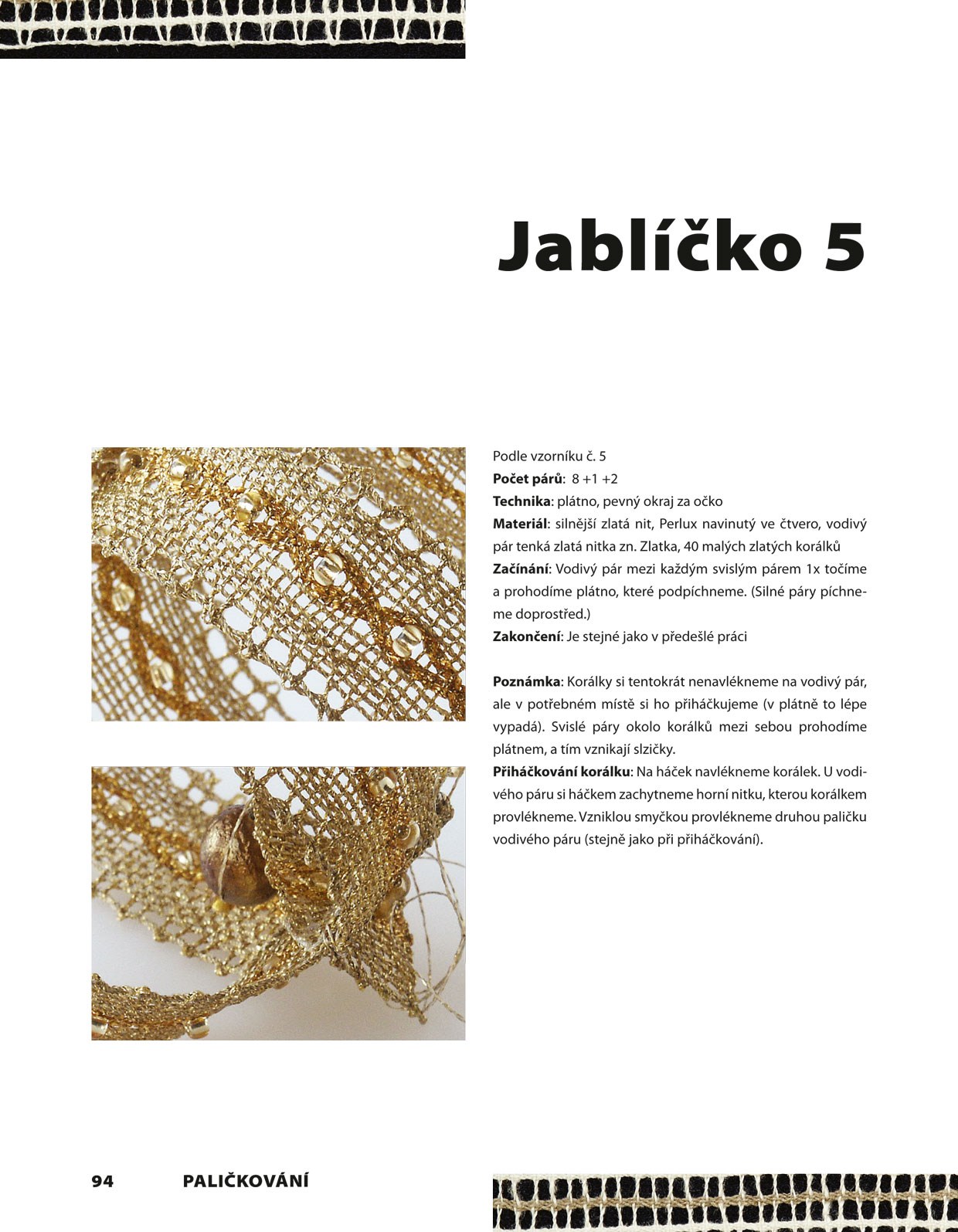 Pojďte se s námi naučit paličkování od začátku, krok za krokem, od výroby herdule, přes navíjení paliček, vázání tkalcovského uzlu, základní techniky až po první vlastní výrobky. Díky knize se seznámíte s pomůckami a materiály a procvičíte si jak krajku začínat i ukončovat. Autorka, zkušená lektorka kurzů ručně paličkované krajky, vám prozradí jak schovat uzlík, který do vzoru nepatří či jak výrobek správně natužit. Jednotlivé návody jsou doplněny barevnými fotografiemi pracovních postupů zachycujícími důležité detaily pro zvládnutí techniky. Nechybí ani podvinky, které jistě ocení i pokročilejší krajkářky, a mnoho inspirativních výrobků z paličkované krajky.