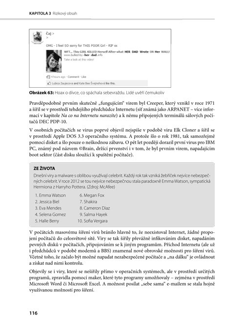 Tento průvodce obsahuje deset tematických okruhů – potíží, které se týkají každého uživatele počítače či mobilního telefonu s přístupem na Internet. Najdete v něm skutečné příběhy ze života a reálné situace. Poskytuje praktické rady: jak problémům předejít a jak je řešit, pokud nastanou. Doporučuje postupy a návody, kontakty na pomáhající pracoviště, tipy na vhodný software, odkazy na další zdroje informací. Na tvorbě knihy se podílelo více než dvě desítky odborníků, pro něž jsou zmíněná témata denním chlebem. Při čtení navíc nebudete potřebovat žádné speciální znalosti.