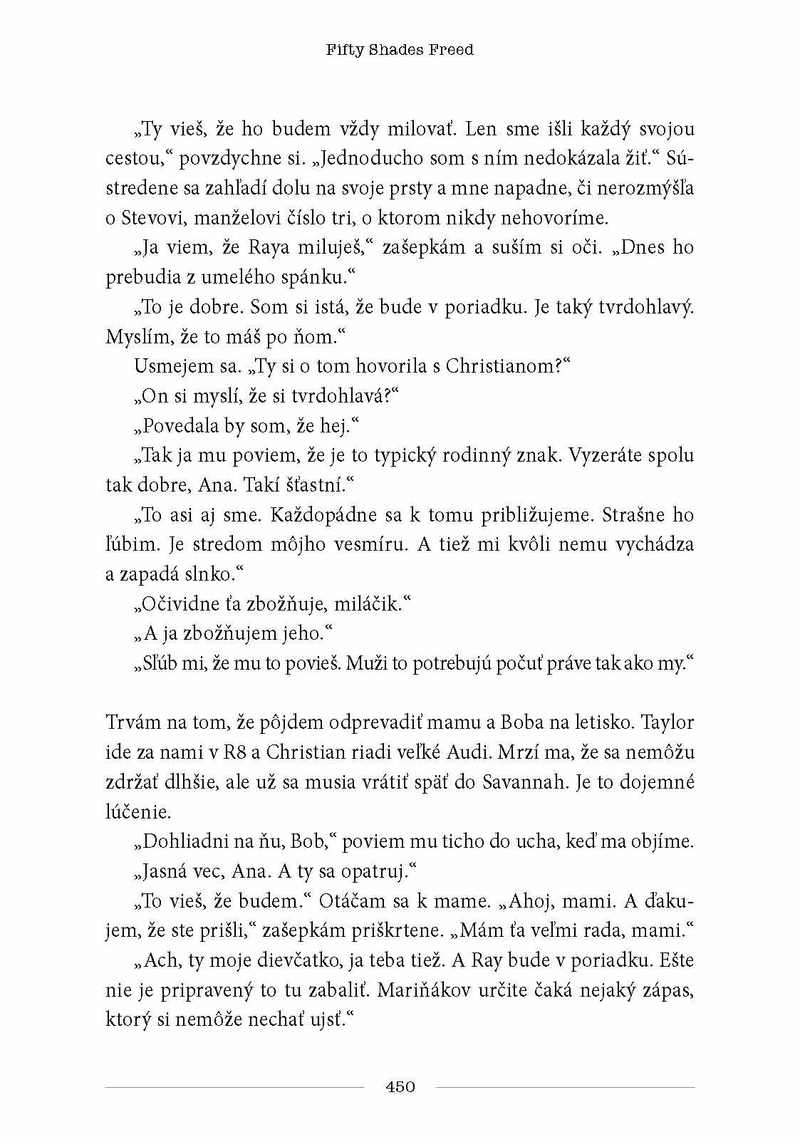 Od začiatku vedela, že vzťah s jej Tieňom nebude prechádzka ružovou záhradou. Christianov životný štýl jej nikdy nebol blízky, no musí sa ho naučiť žiť spolu s ním, a to bez toho, aby stratila vlastnú tvár, integritu a nezávislosť. Christian zas musí prekonať svoju posadnutosť kontrolou a vyrovnať sa so svojimi vnútornými démonmi.