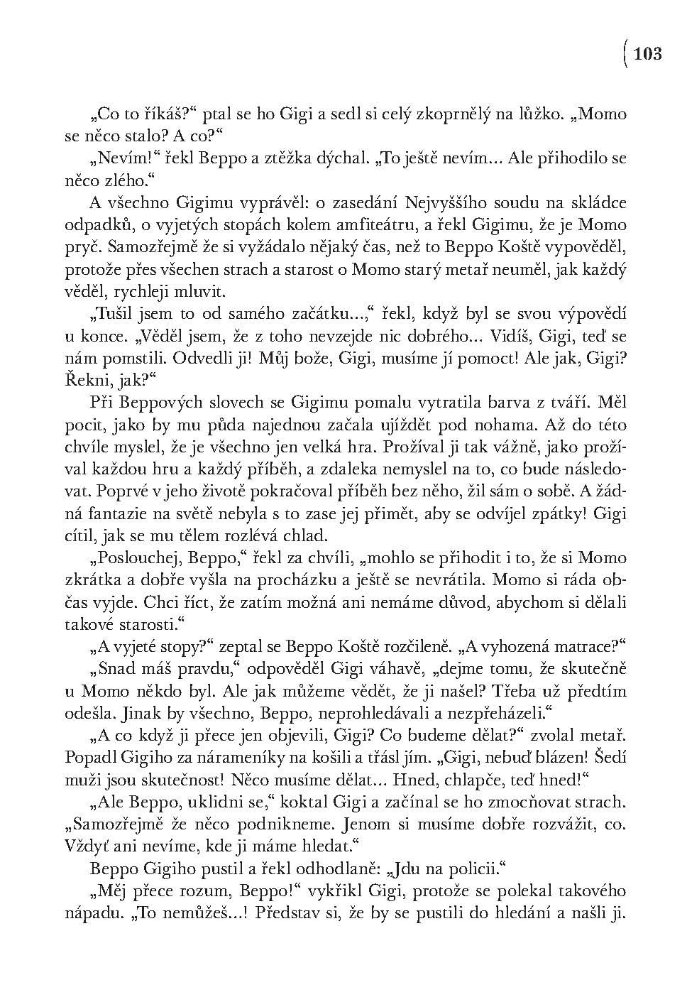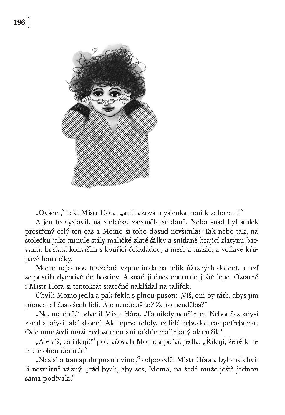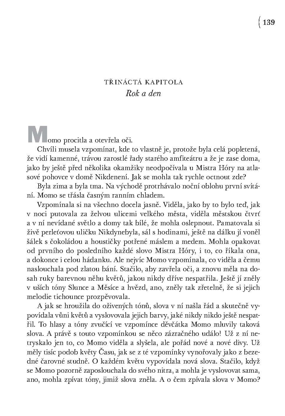 Podivuhodné vyprávění z pera autota světoznámého Nekonečného příběhu. Nevšední vyprávění o děvčátku Momo, které přemohlo zloděje času. Díky její veliké odvaze tak lidé opět nabyli ztracenou schopnost čas vnímat. Mimořádná kniha, plná poetiky a napětí, je psaná strhujícím jazykem a čtenáře zaujme už od prvních řádků. Stejně jako i u dalších knih Michaela Endeho (Nekonečný příběh) vstoupíme do světa podivuhodné fantazie.