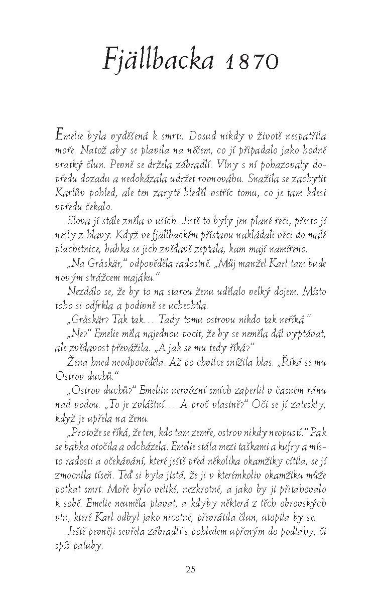 Patrik Hedström se po těžké nemoci vrací do zaměstnání. Zároveň mají on i jeho manželka Erika plné ruce práce s předčasně narozenými dvojčaty. Hned po návratu na policejní stanici ho zcela pohltí nové vyšetřování vraždy. Obětí je ekonom Mats Sverin, rodák z Fjällbacky, který žil dlouhá léta v Göteborgu a teprve před nedávnem se po tragické události do rodného kraje opět přistěhoval. Mats měl pověst přátelského a oblíbeného chlapíka, o svém soukromí se však s nikým příliš nebavil. Vychází najevo, že těsně před smrtí navštívil svou dávnou lásku Annie na ostrově Graskär, o němž v kraji odjakživa kolovaly velmi zlověstné příběhy. Říká se, že ostrov obývají duchové mrtvých, a ti by živým rádi předali své poselství…