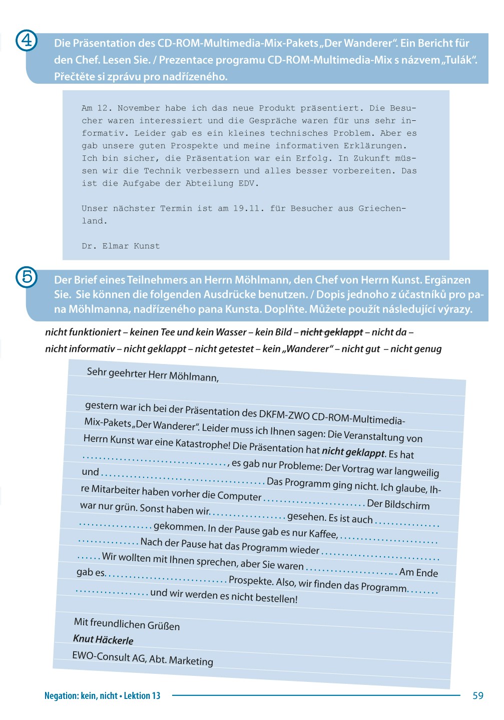 Příjemnou a přístupnou formou si procvičíte např. slovesa (odlučitelná, způsobová, zvratná a slovesa s předložkami, dále préteritum, perfektum a konjunktiv), podstatná jména, časové údaje, množné číslo, pády, členy, spojky, infinitiv s „zu“, vedlejší věty a mnoho dalšího.