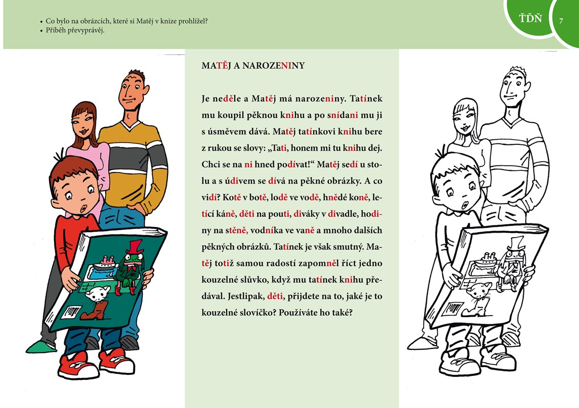 Uvnitř knihy najdete návody, jak hlásky správně vyslovovat, texty k procvičování, doplňovací cvičení, pexeso s obrázky a slovy, loto. Děti přímo přitahuje tzv. obrázkové čtení, přizpůsobené schopnostem malých čtenářů. Příběhy jsou o tom, co nejmenší nejvíce baví: o kamarádech, rodině či o zvířátkách.
