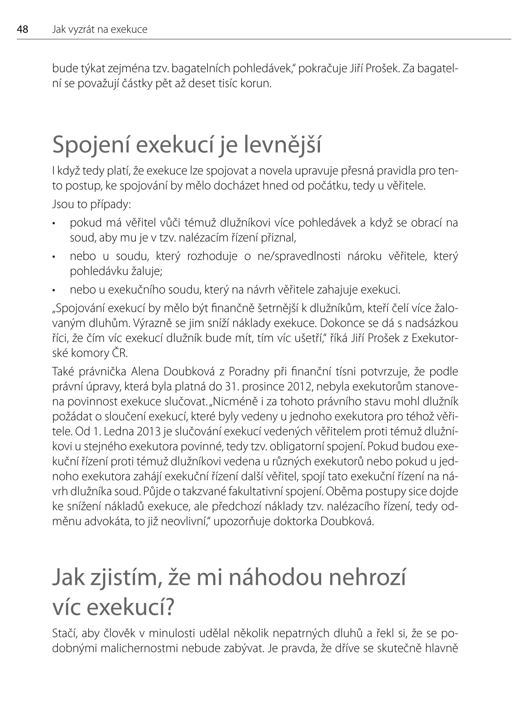 V knize vám poradí i Daniel Hůle z neziskové organizace Člověk v tísni, prezident Exekutorské komory České republiky Jiří Prošek, právnička obecně prospěšné společnosti Poradna při finanční tísni Alena Doubková a brněnská advokátka Jana Hejlová.