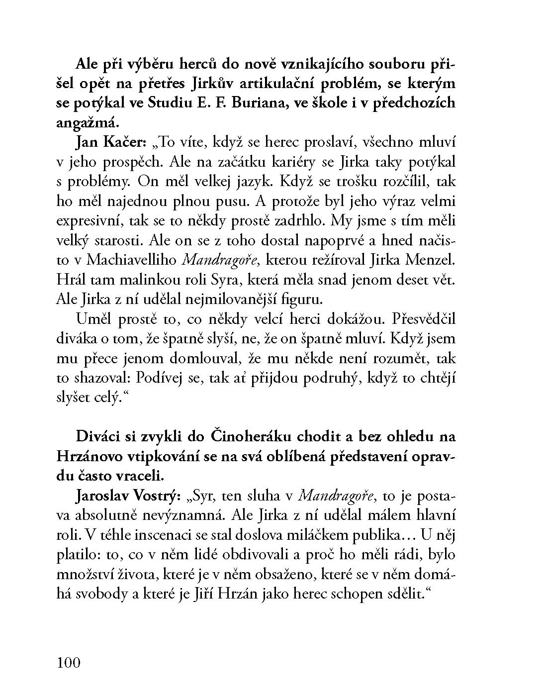 Jiří Hrzán patřil k nejosobitějším a nejoblíbenějším filmovým a televizním hercům. Duší však byl spjat především se svou domovskou scénou, s Činoherním klubem. Příběh nezapomenutelného herce, jehož tragická smrt zaskočila jak jeho blízké, tak i celou divadelní veřejnost.