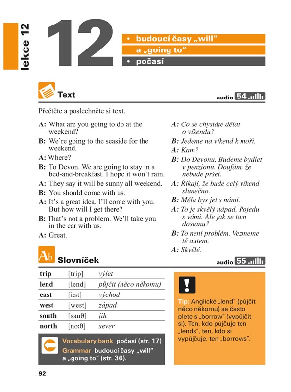 - Lekce s cvičeními vás uvedou do nejčastějších životních situací, procvičí s vámi slovní zásobu i obraty, které budete potřebovat.