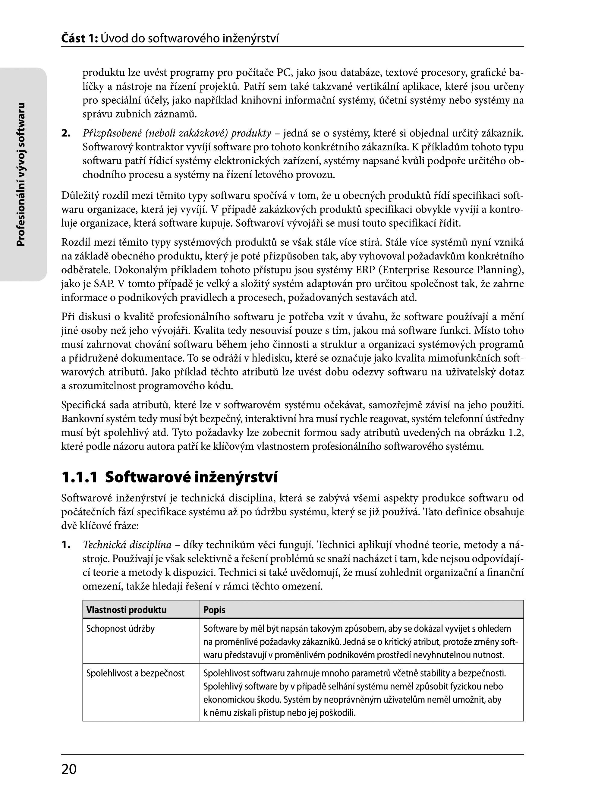 Kniha je sestavena tak, aby ji bylo možné využít v obecných úvodních kurzech softwarového inženýrství i v kurzech středně pokročilých zabývajících se konkrétními tématy. Zaměřuje se na klíčová témata, která jsou zásadní pro všechny vývojové procesy, a na témata týkající se vývoje spolehlivých distribuovaných systémů. Kombinuje agilní metody i metody „tradičního“ plánovaného softwarového inženýrství.