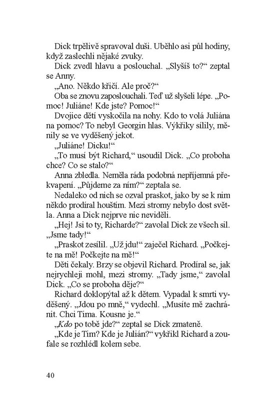 Tentokrát Pětka vyrazí na kolech na výlet pod stan. Přidá se k nim nový kamarád Richard, kterého potkají v lese u jezírka. Pak se ale skoro bez rozloučení ztratí a děti se ho vydají hledat, protože se dozvěděly, že s ním má někdo nejspíš nevyřízené účty. A tak se dostanou do tajemného Sovího doupěte, kde žije hubená žena, ošklivý hrbáč a ještě někdo jiný…