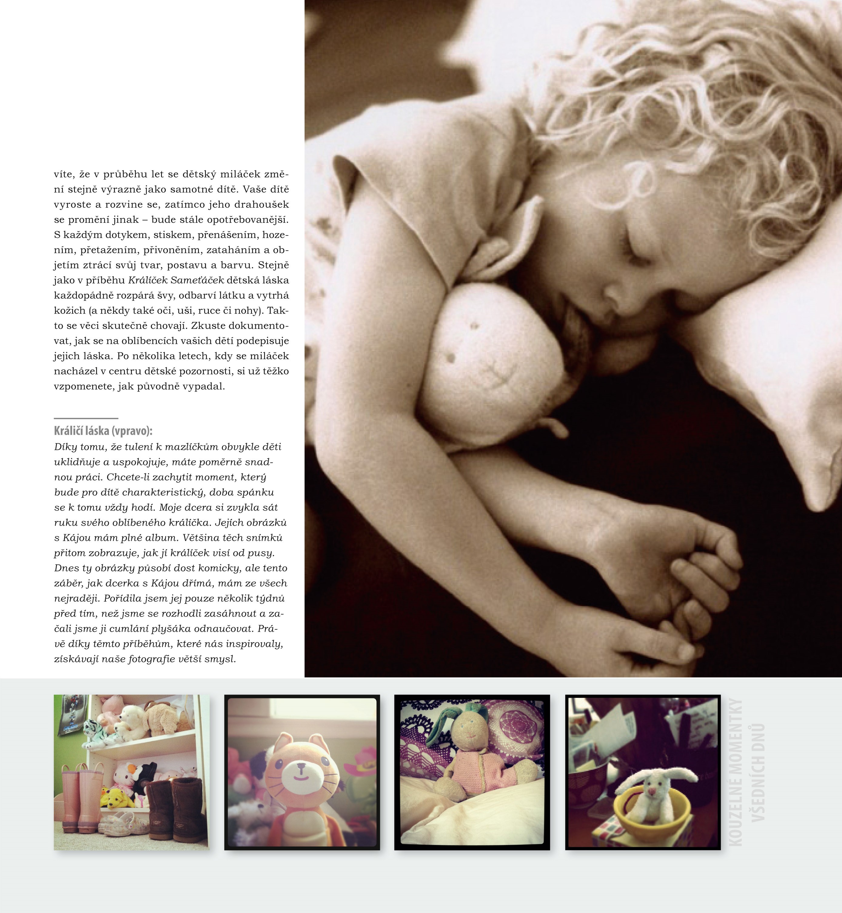 - Inspirující příběhy a obrázky od samotné autorky i od členek výjimečné komunity matek, které zároveň fotografují, píší a blogují