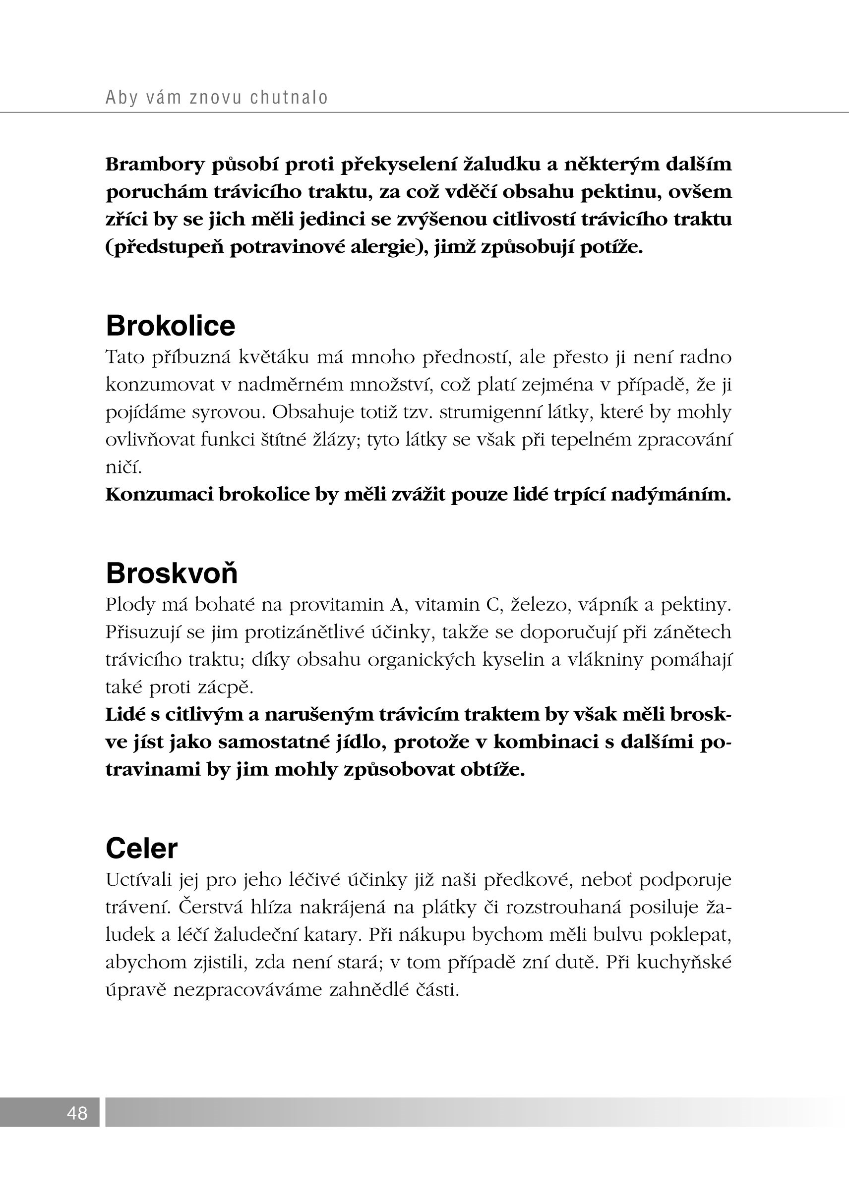 Kniha vám přináší rady odborníků, ale i ověřené praktické zkušenosti lidí, kteří se s touto zdravotní odchylkou potýkali. Nabízí konkrétní návrhy změny životního stylu, cviky, které vám rozproudí metabolismus a činnost trávicího systému, a velkého rádce o přínosech i úskalích, které vám mohou přinášet tzv. zdravé potraviny. V této části knihy naleznete mnoho receptů na léčivé čaje, odvary, nálevy, ale i využití daných potravin v běžné kuchyni s ohledem na trávicí potíže.