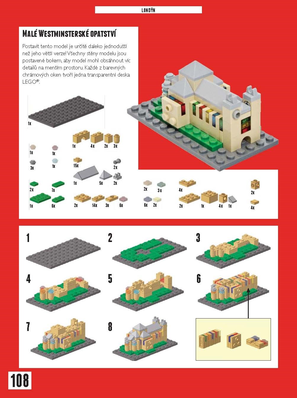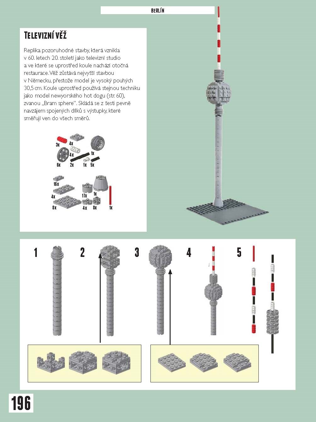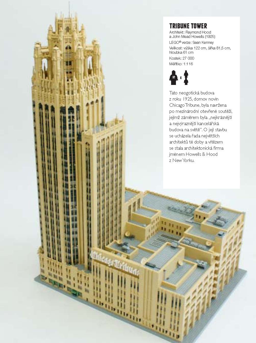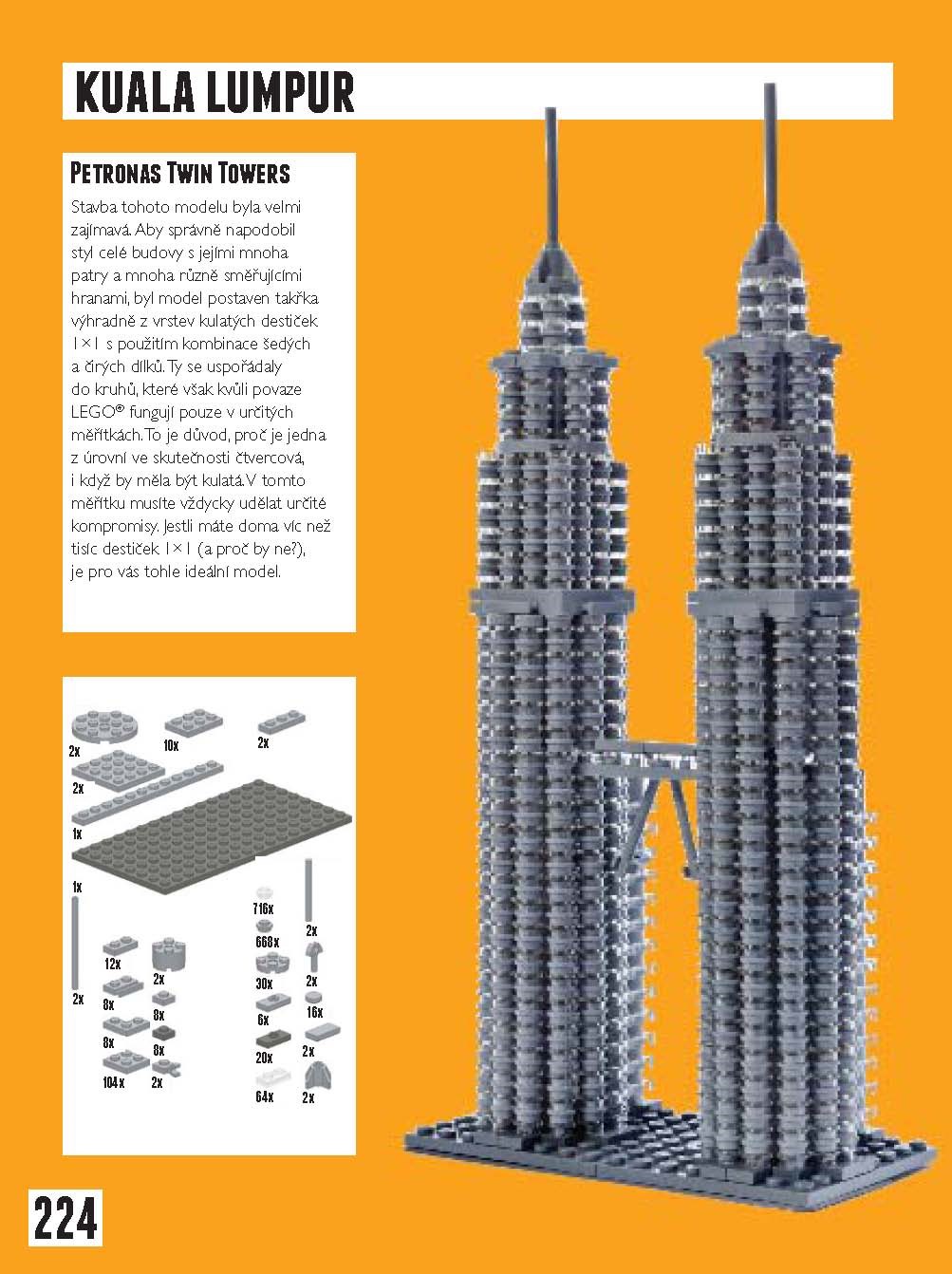 Tato kniha je neoficiálním průvodcem po modelech staveb a dalších symbolů největších měst světa postavených nadšenci z kostek LEGO. Najdete tu nejen obří projekty jako nádraží St Pancras v Londýně nebo Taj Mahal v indické Agře, ale i drobné scény z každodenního života v Paříži, Amsterdamu nebo třeba Melbourne. Můžete si vybírat z více jak 100 modelů, z nichž přes 50 obsahuje podrobné instrukce i seznam potřebných dílů LEGO k jejich postavení. Jedním z nich je i pražský Karlův most s minifigurkami představujícími nejen turisty a umělce, ale také sochy i s jejich atributy jako svatozář nebo meč. V New Yorku nechybí stánek s hot dogy a v Berlíně východoněmecký symbol panáčka pro přechod pro chodce.