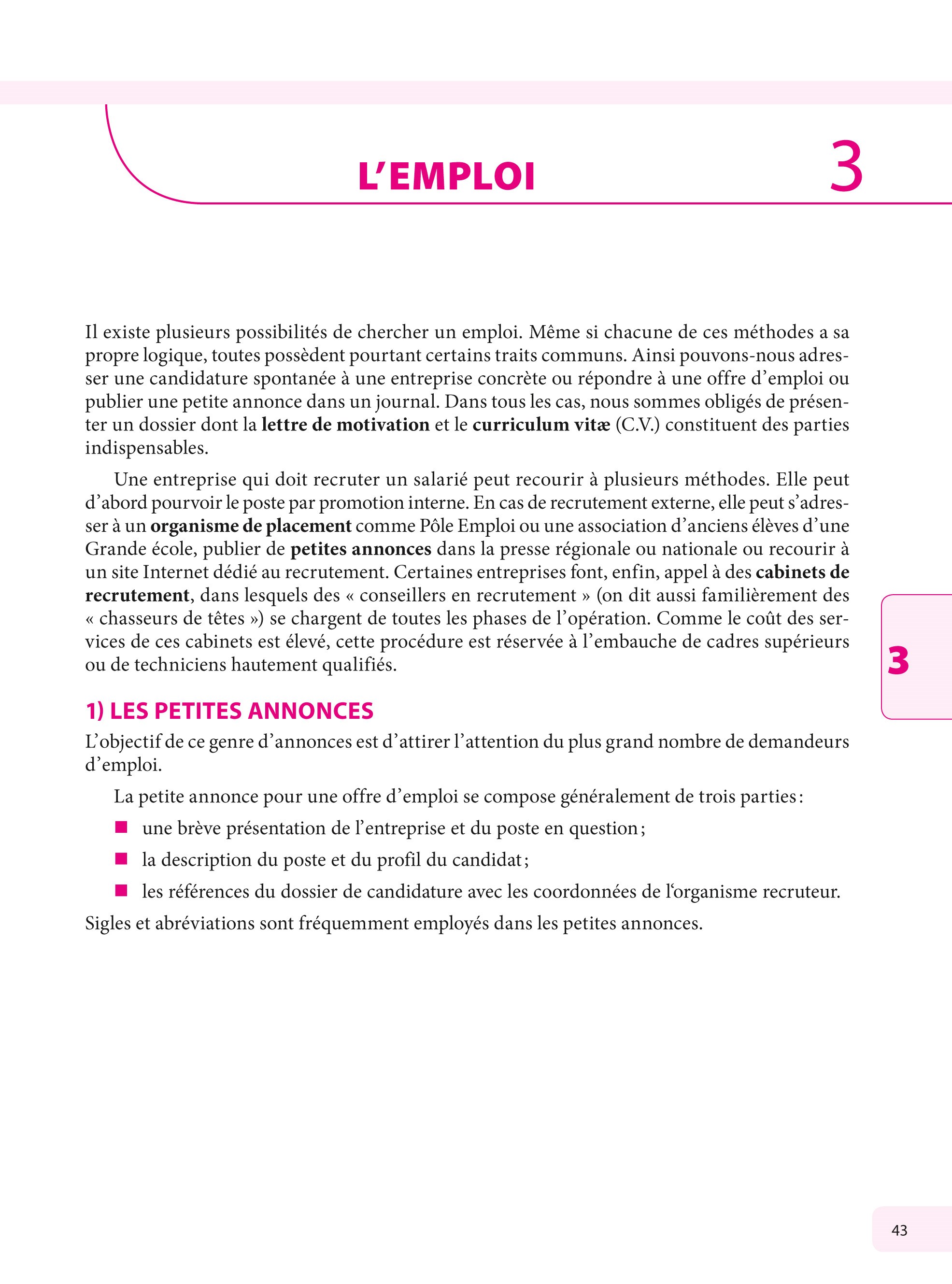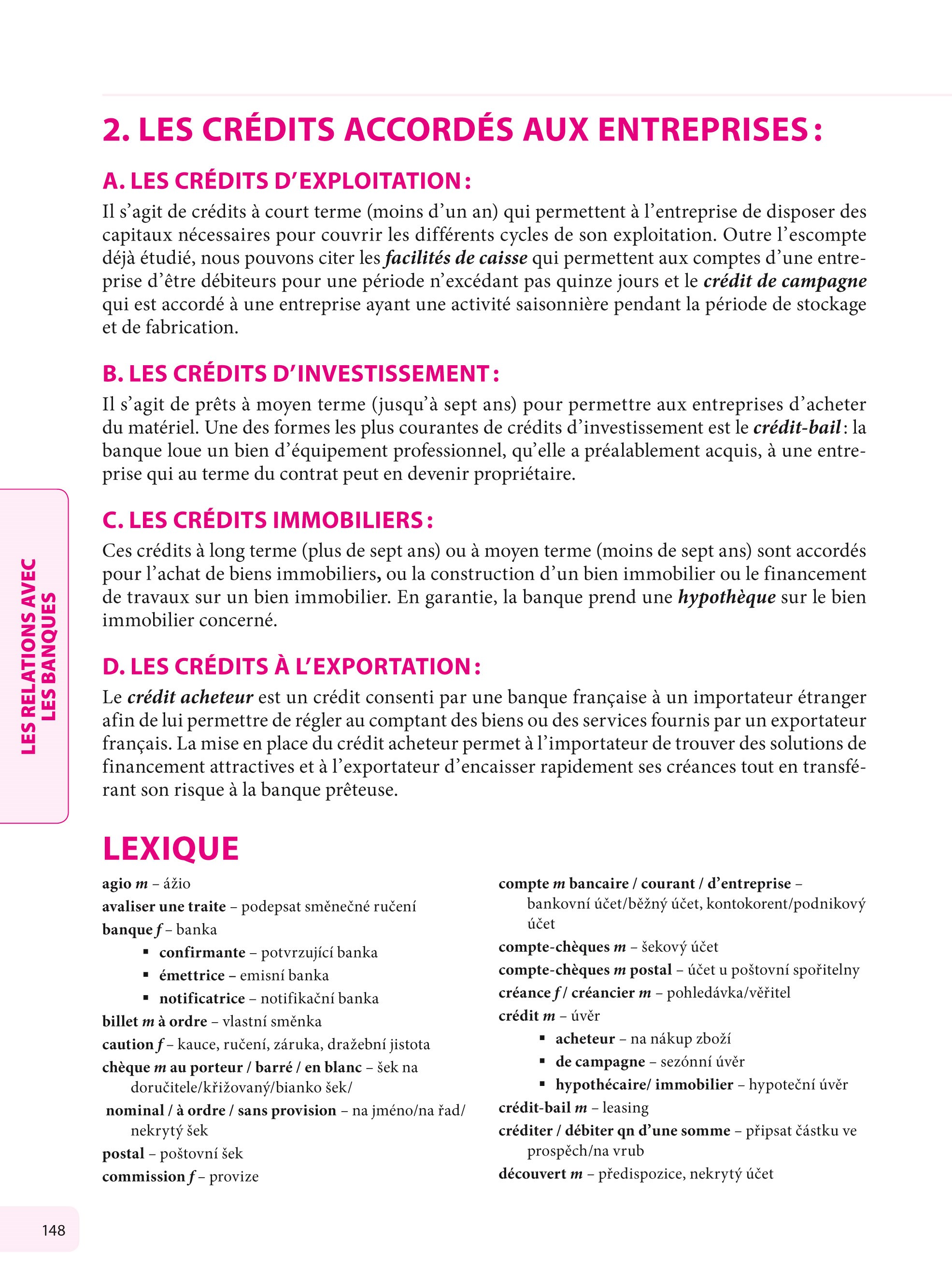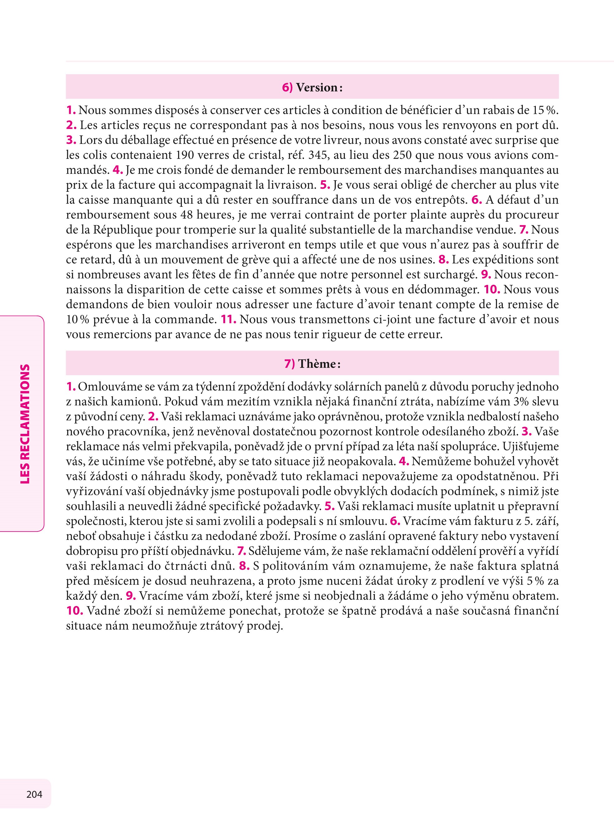 Na konci učebnice je zařazen přehled nejpoužívanějších obchodních zkratek, francouzsko-český a česko-francouzský odborný slovník a klíč ke cvičením.