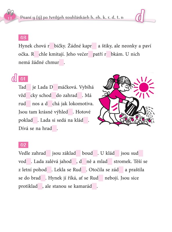 Texty lze použít dvojím způsobem, který zvolíte podle zralosti dítěte nebo obtížnosti probíraného jevu. Buď můžete dítě nechat v první části doplnit chybějící písmena, nebo mu text podle klíče v závěru nadiktovat.