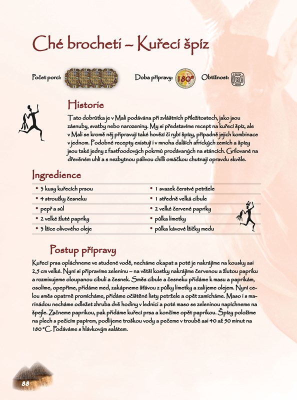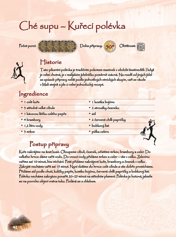 Rádi vaříte a ochutnáváte exotická jídla? Chcete poznat chuť Afriky? Máme pro vás jedinečnou publikaci, ve které najdete 50 receptů z různých koutů afrického kontinentu. Autorka, rodačka z Mali žijící 9 let v České republice, adaptovala původní africké recepty na české podmínky, všechny ingredience tedy seženete na našem trhu a můžete se tak bez obav pustit do přípravy delikátních pokrmů. Jelikož africká kuchyně se kromě chuťové jedinečnosti vyznačuje také jednoduchostí, zvládnou jednotlivé recepty i méně pokročilí kuchaři a kuchařky. Těšit se můžete například na etiopské palačinky, knedlíky ze Sahary či arašídový guláš. A na své si přijdou i vegetariáni.