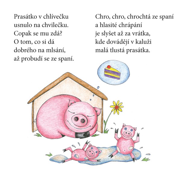 Leporelo pro nejmladší děti s jednoduchými básničkami a milými obrázky. Děti nahlédnou do života zvířat, například pejska, kočky, ježka, prasátka, kravičky, papouška...
