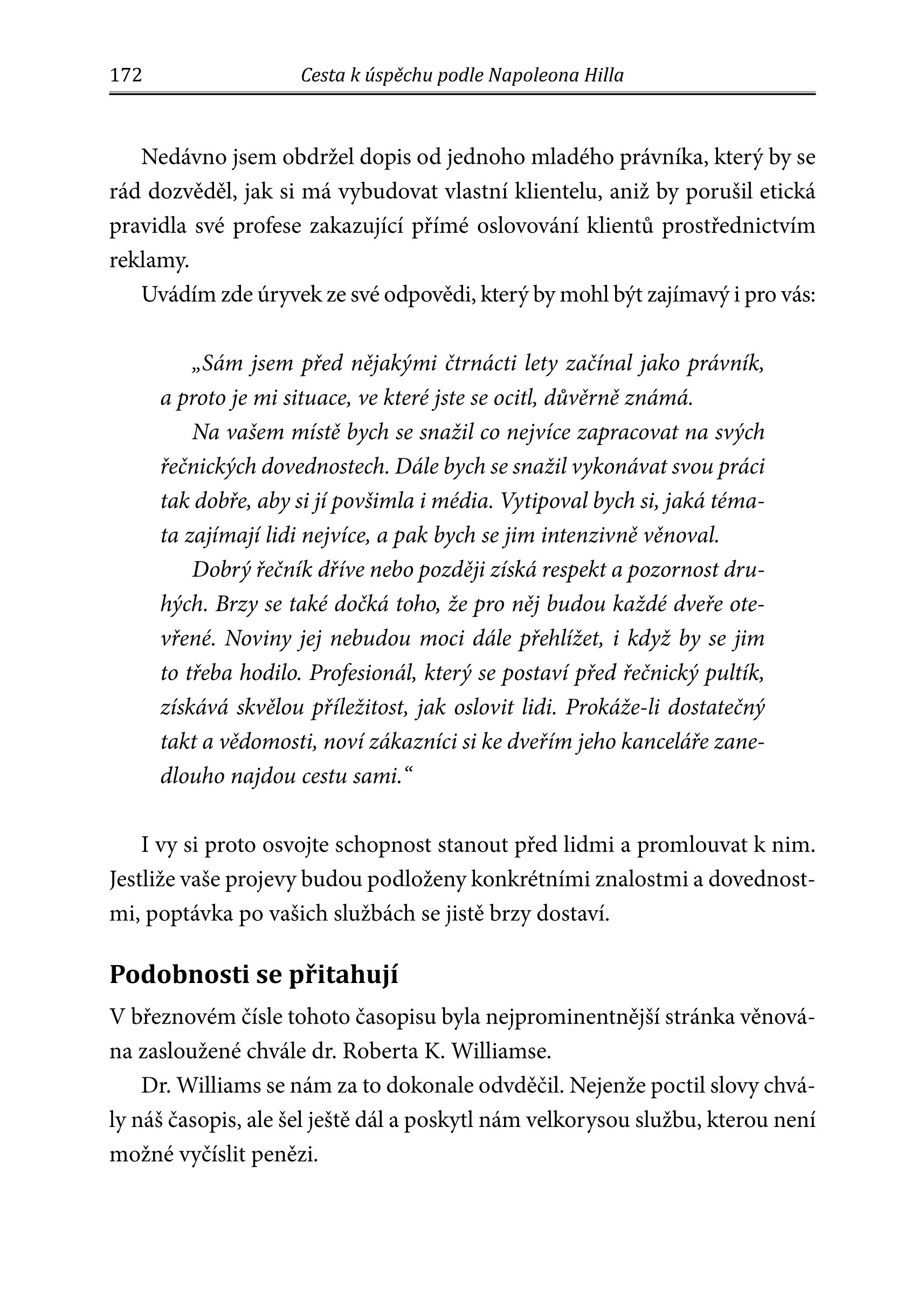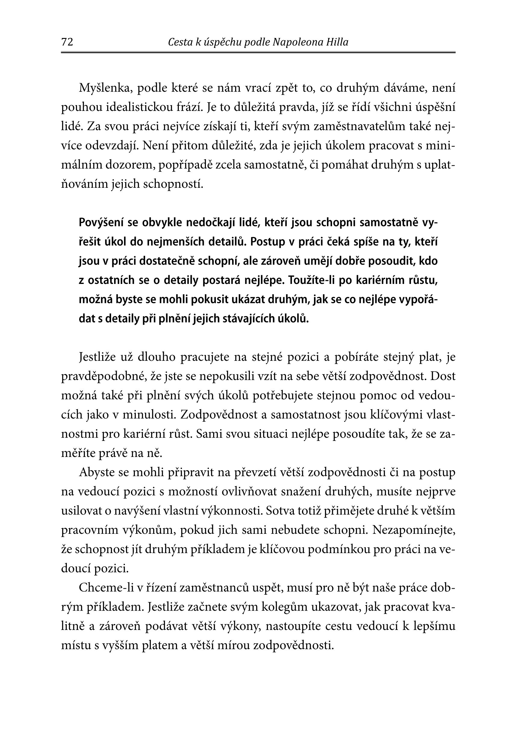 Kniha starších, dosud nevydaných textů Napoleona Hilla vám poskytne tu nejlepší mapu na cestu k úspěchu, desetiletími ověřené rady, které neztratily nic ze své platnosti. Na základě příběhů úspěšných lidí své doby i svých vlastních zážitků dospěl Hill k definici patnácti nejdůležitějších ukazatelů, kterými byste se na své cestě měli řídit.