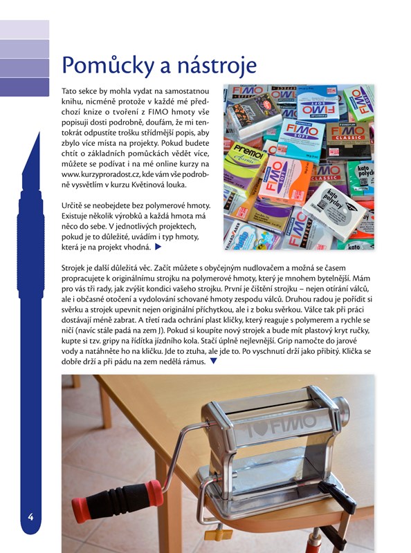 Pojďte si opět hrát a relaxovat s FIMO hmotou! Máme pro vás připraveny další techniky a postupy, nápadité výrobky a nepřeberné množství inspirace. Ve zbrusu nové knize Moniky Brýdové naleznete na dvě desítky nových projektů a už teď se můžete těšit na Ještěrčí vzor, kouzelný Hidden magic, patchworkové Bargello, Rybí lesk a mnohé další. Všechny postupy jsou opět srozumitelně vysvětleny krok za krokem a doprovázeny bohatou fotografickou přílohou, samozřejmě nechybí ani popis základních materiálů a pomůcek.