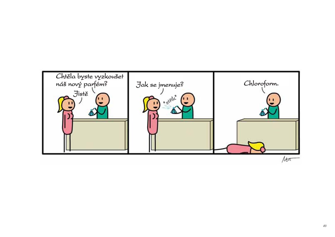 Smějte se společně s miliony fanoušků webového komiksu Kyanid a Štěstí po celém světě. Toto knižní vydání obsahuje 150 stripů včetně 30 dosud nepublikovaných, které svými nekorektními vtipy, vyšinutými postavami a zvrhlými pointami nenechají vaše bránice v klidu.